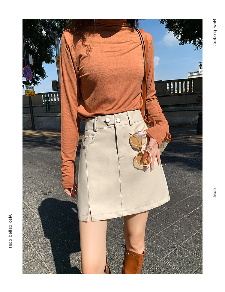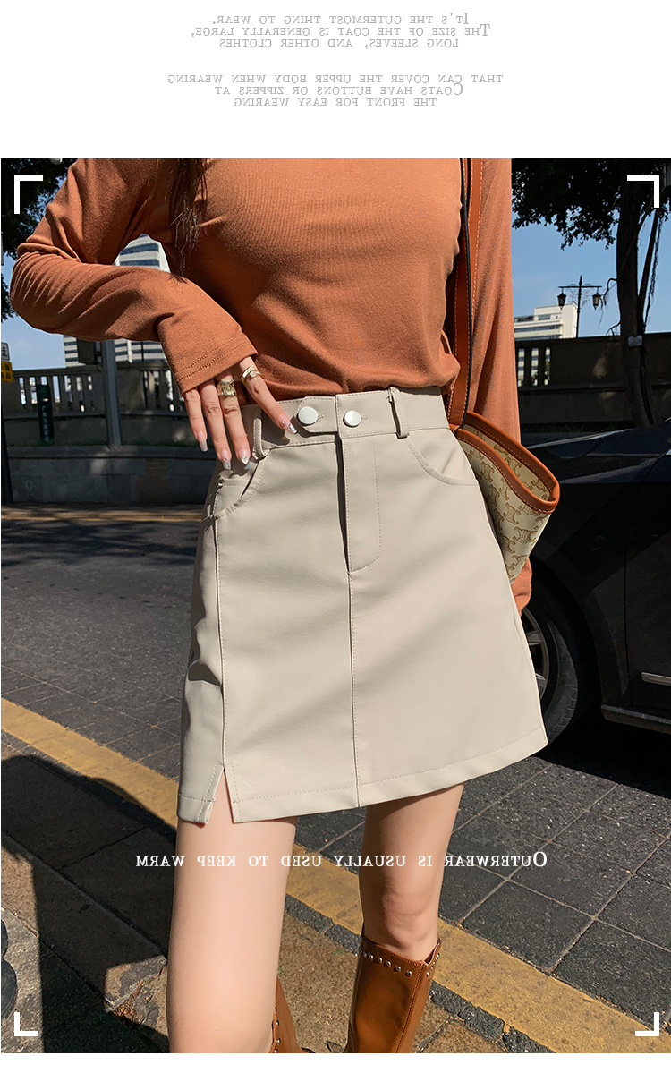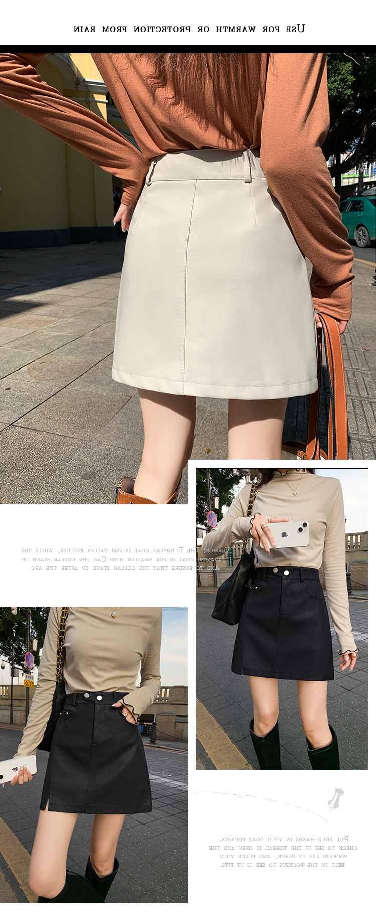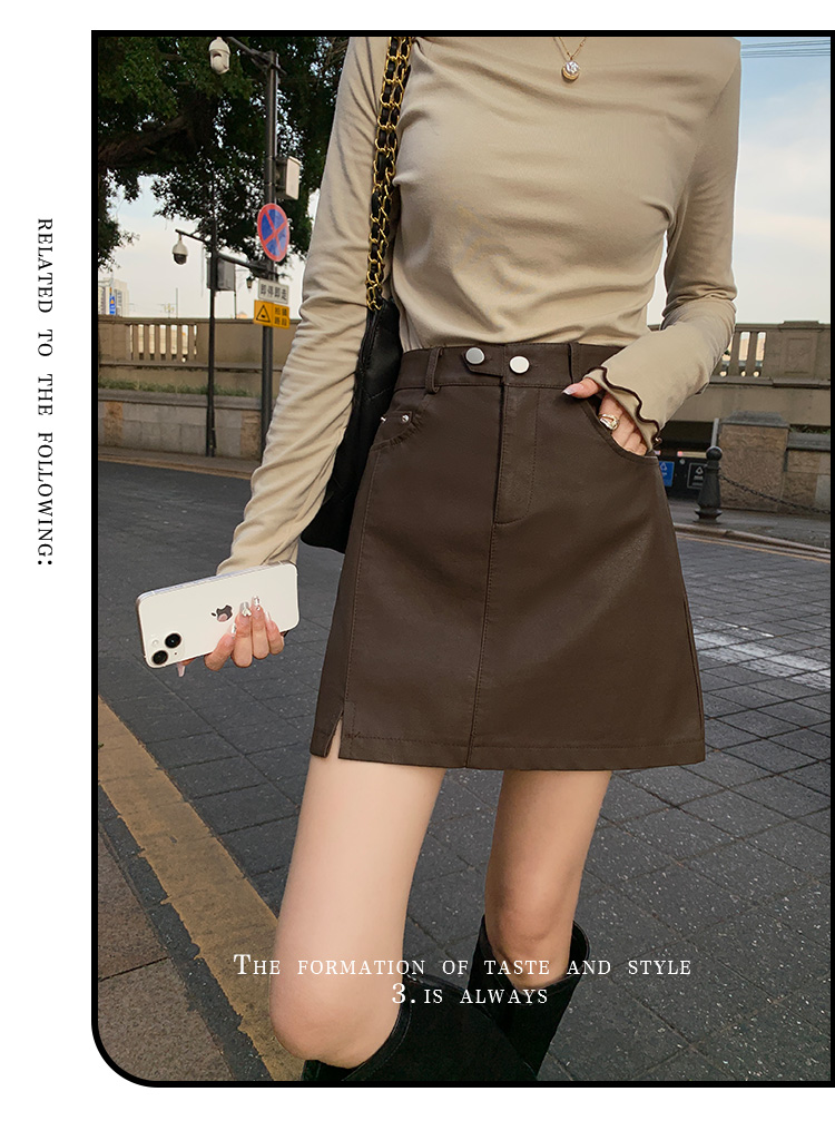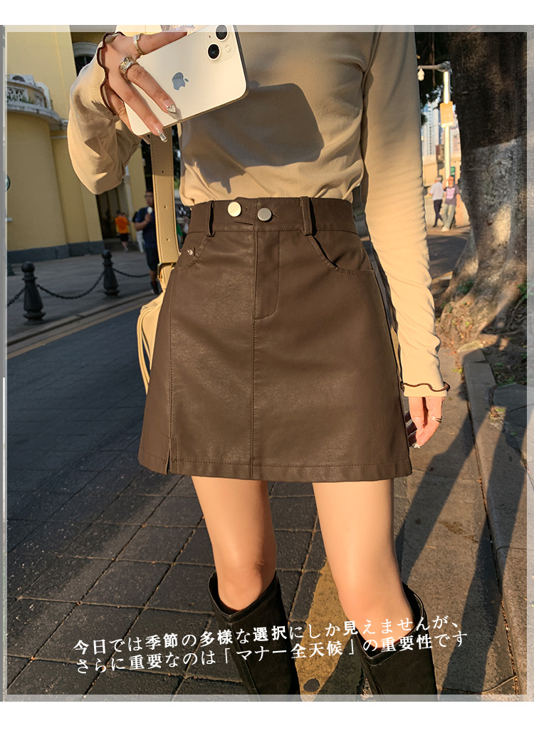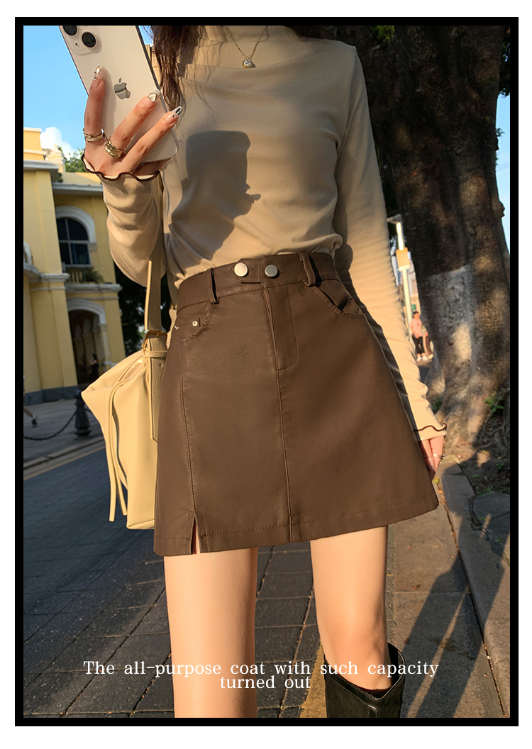 Coffee High Waist Sexy Pu Leather Short Skirt Woman Autumn Winter Korean Slim Chic Pencil Skirts Lady