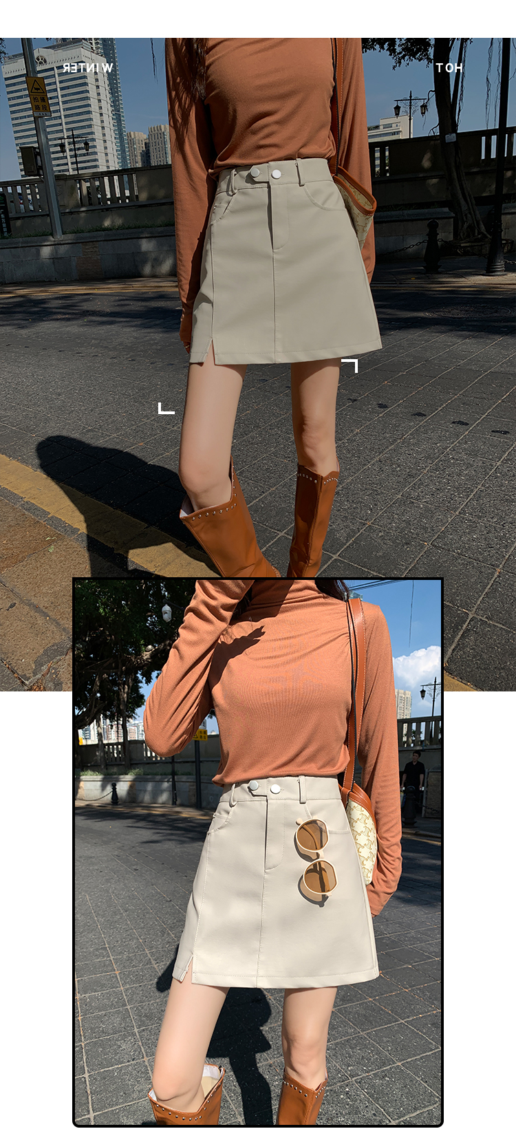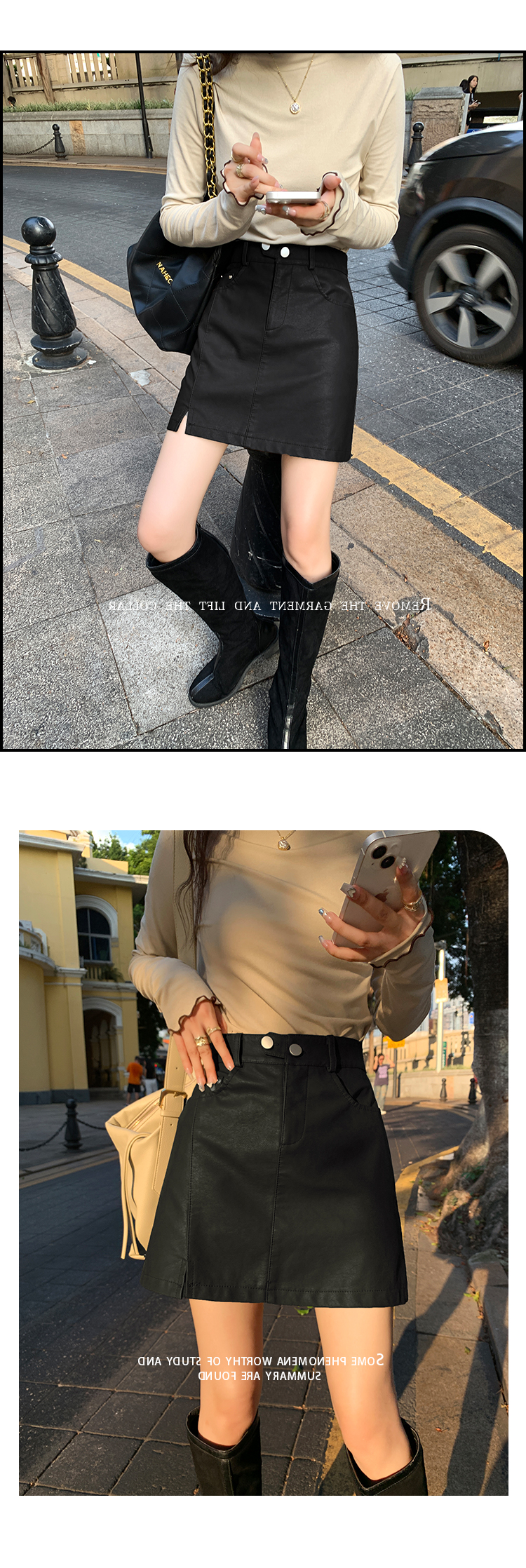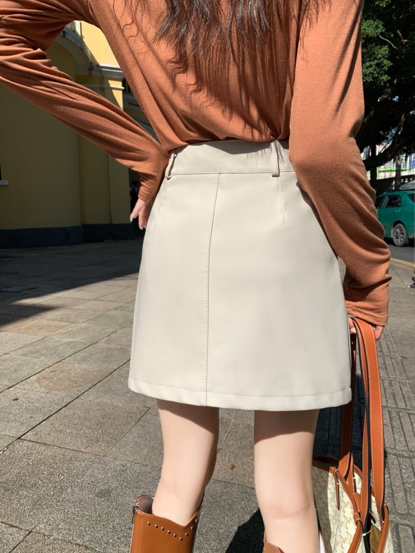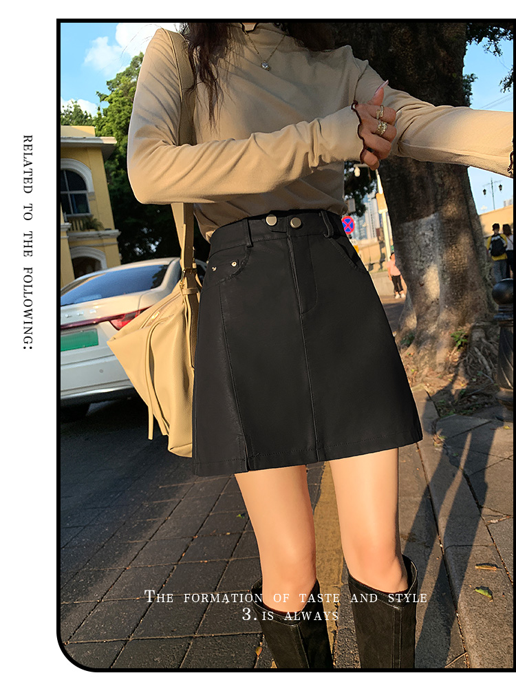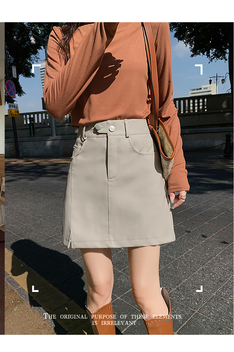Coffee High Waist Sexy Pu Leather Short Skirt Woman Autumn Winter Korean Slim Chic Pencil Skirts Lady