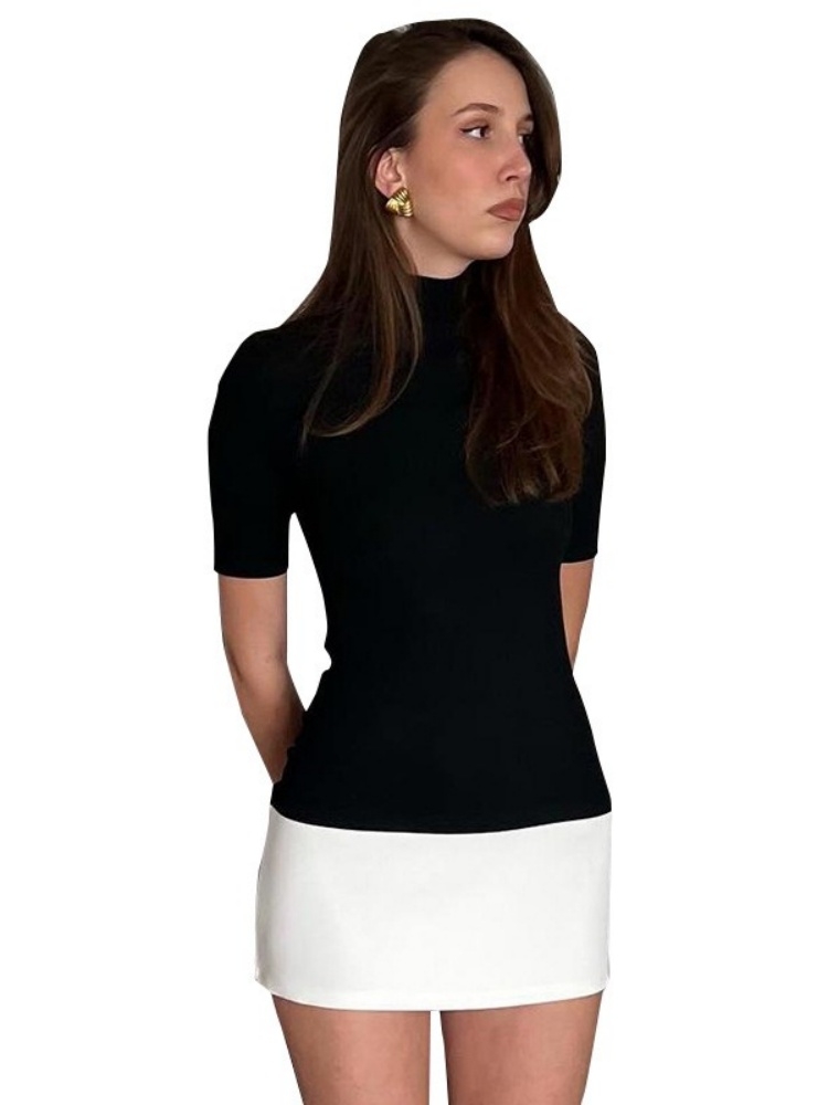 3 reviews for Contrast Color Bodycon Dress For Women Summer Clothing Turtleneck Vestidos Elegantes Para Mujer Half Sleeves Mini Streetwear Y2k