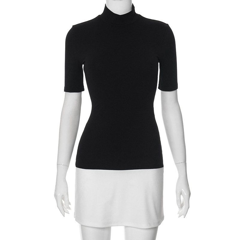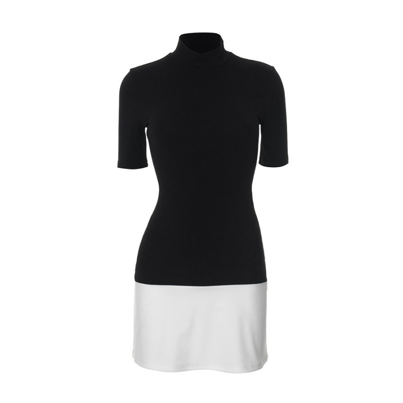 Contrast Color Bodycon Dress For Women Summer Clothing Turtleneck Vestidos Elegantes Para Mujer Half Sleeves Mini Streetwear Y2k