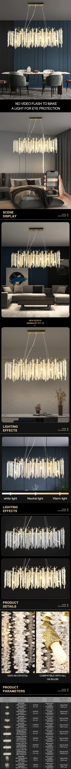 home decorationPendant lights, luxury crystal living room chandelier, dining room Pendant lamp, ceiling light, indoor lighting