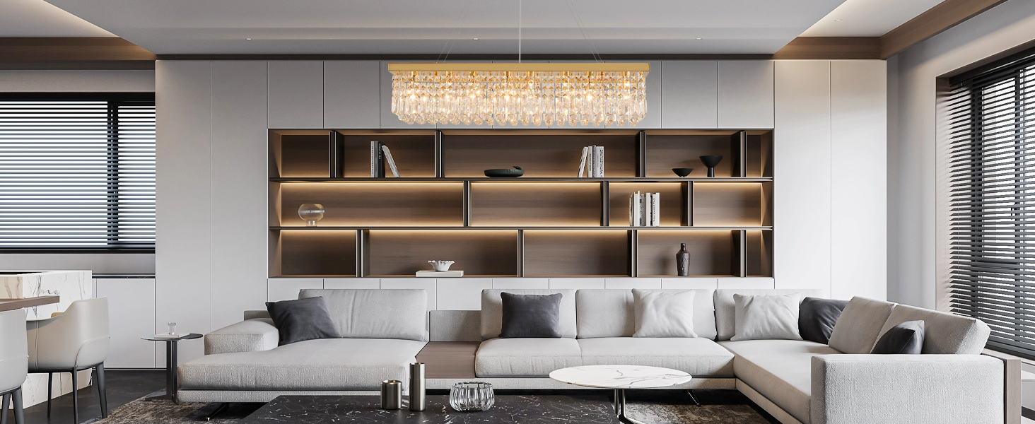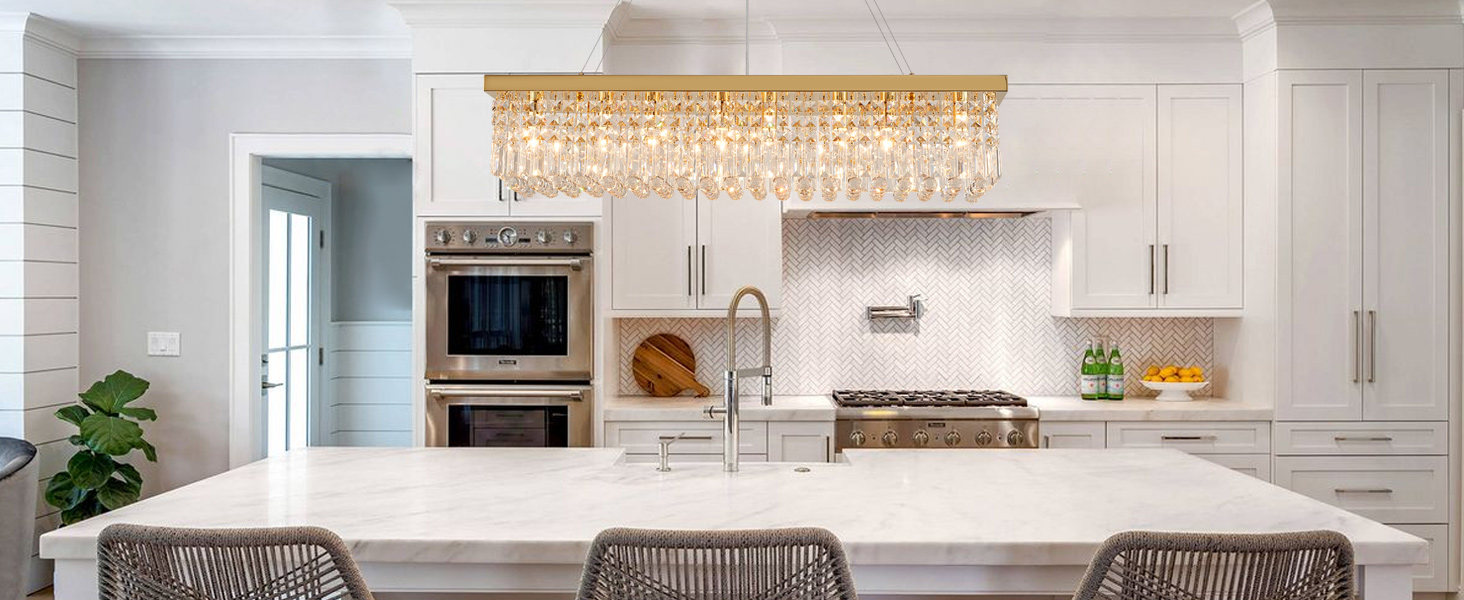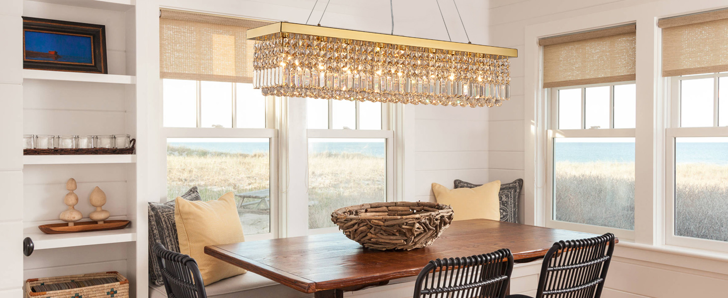 Add to cartCrystal Chandelier Modern Gold Crystal Chandelier Rectangular Pendant Lighting Fixture for Dining Room Kitchen