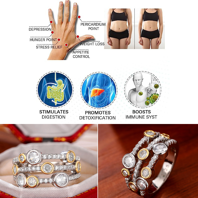 2 reviews for Crystal Zircon Weight Loss Acupuncture Point Rings Women Slimming Treatment Geometric Lines Color Separation Ring Jewelry Gifts