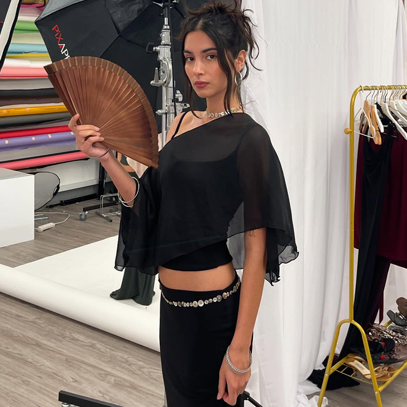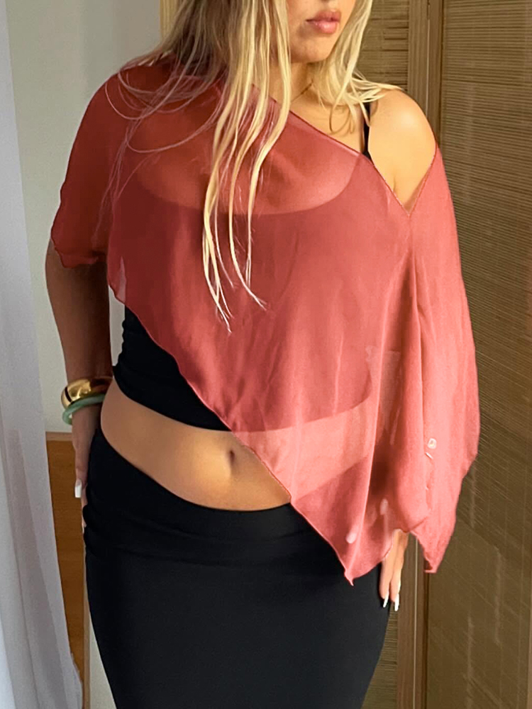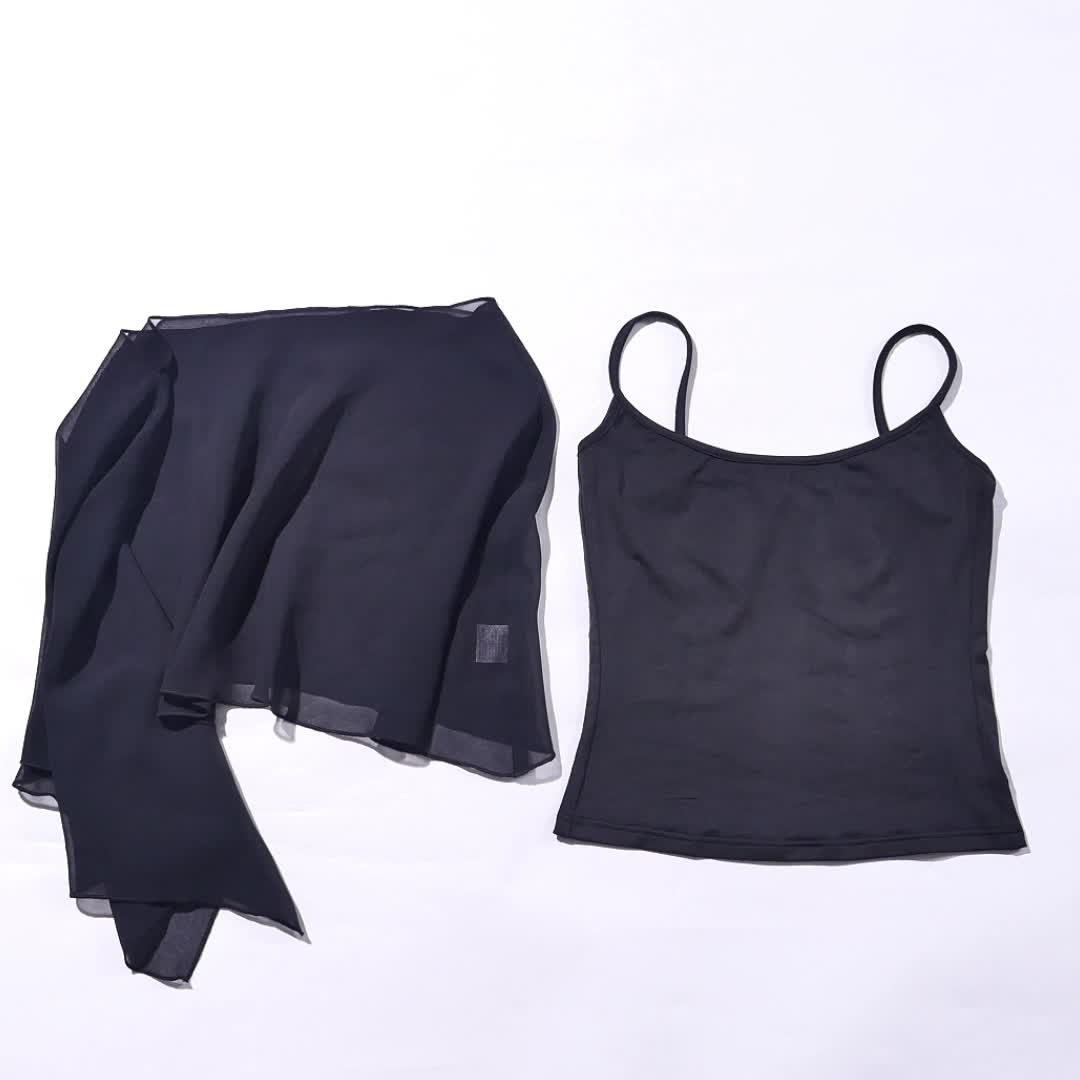 CUTENOVA Hottie Girls Two Piece Solid Color Camisole + Sexy Neckless Waistless Mesh Shoulder Slash Ruffled Hem Outfit Streetwear