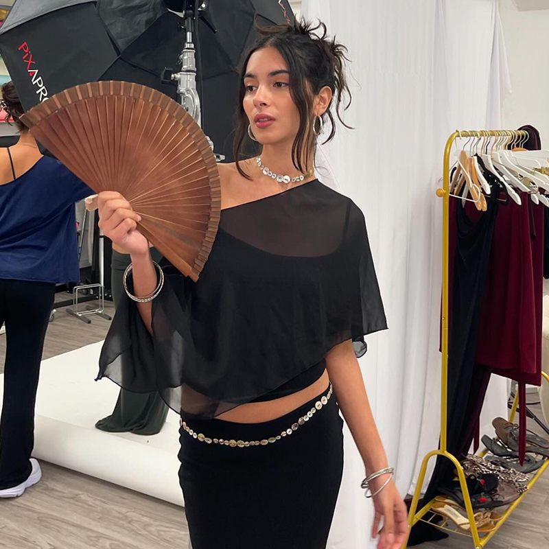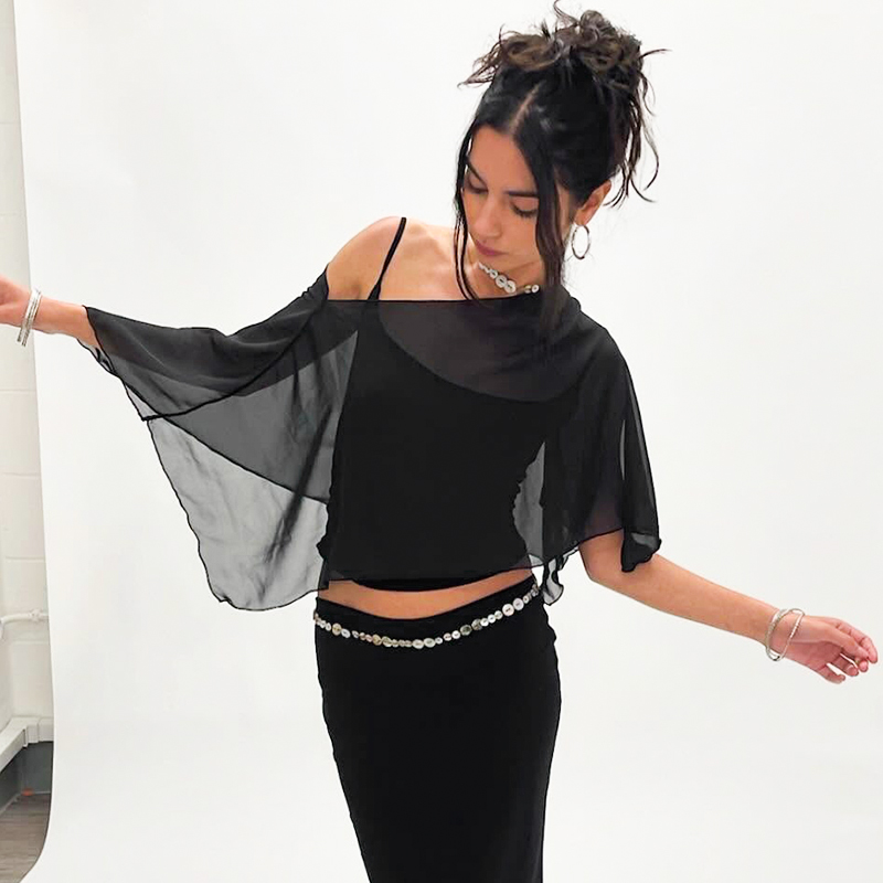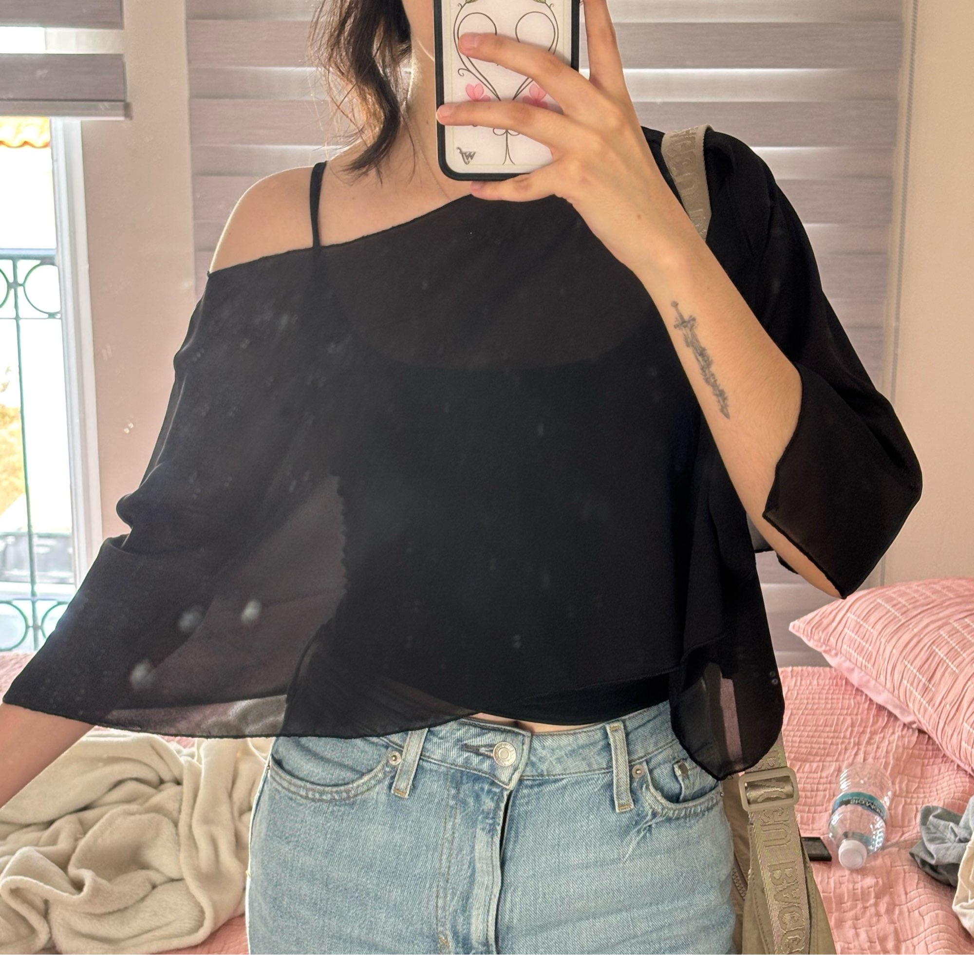 3 reviews for CUTENOVA Hottie Girls Two Piece Solid Color Camisole + Sexy Neckless Waistless Mesh Shoulder Slash Ruffled Hem Outfit Streetwear