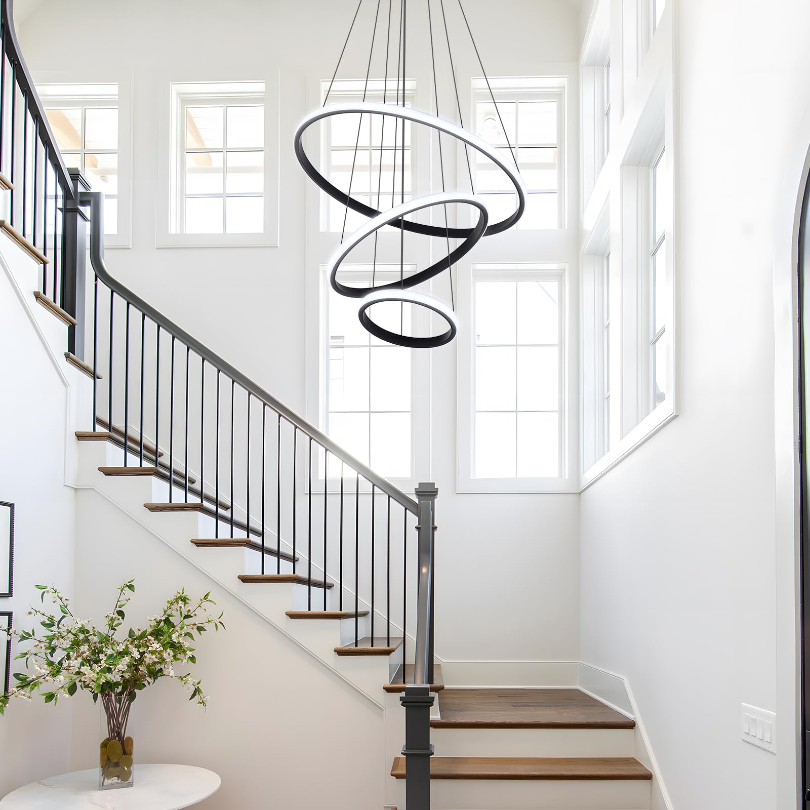 Wide Application: Unique 3 rings circular design add more elegant and luxurious elements to home, Its creative play on shape and form make it a perfect pendant light to act as a centerpiece in a dining room, living room, or entryway.