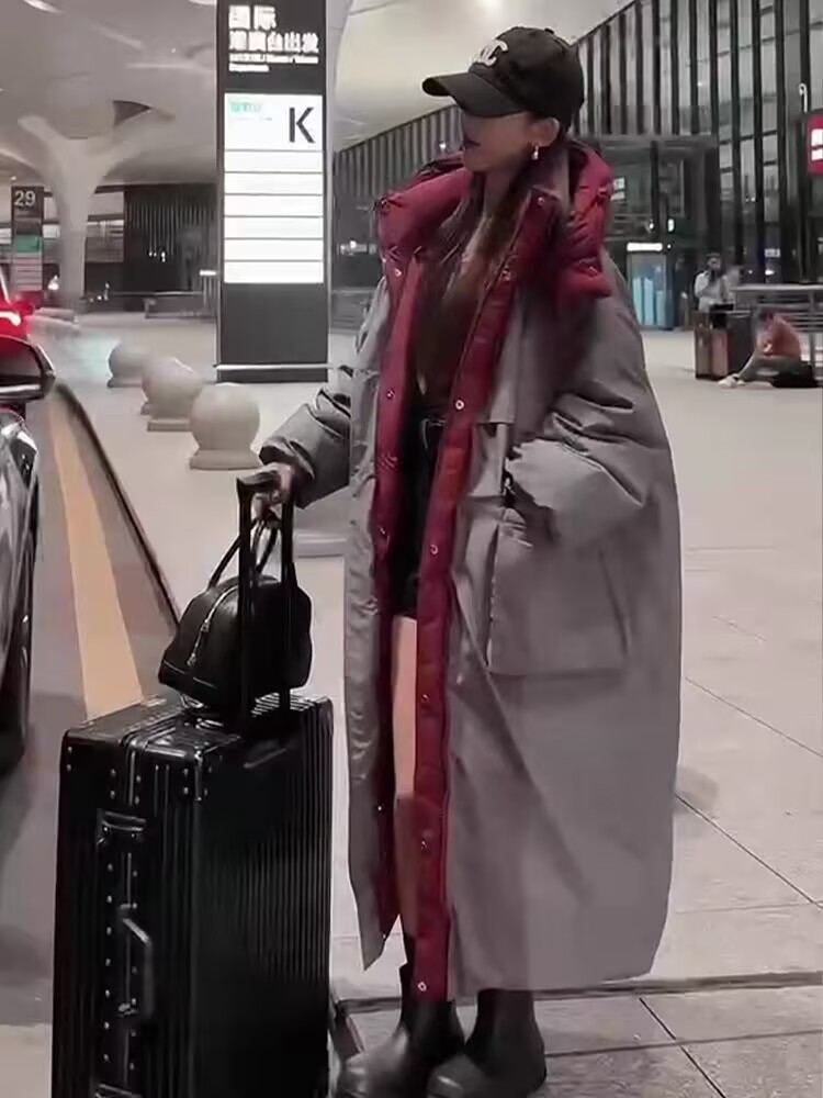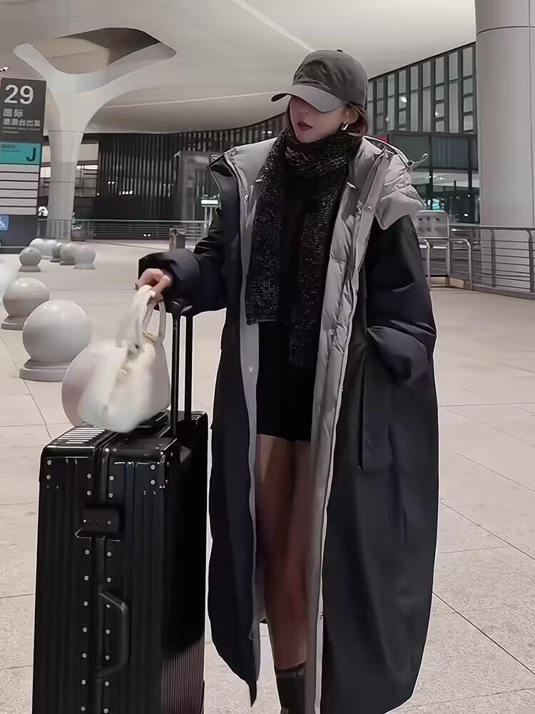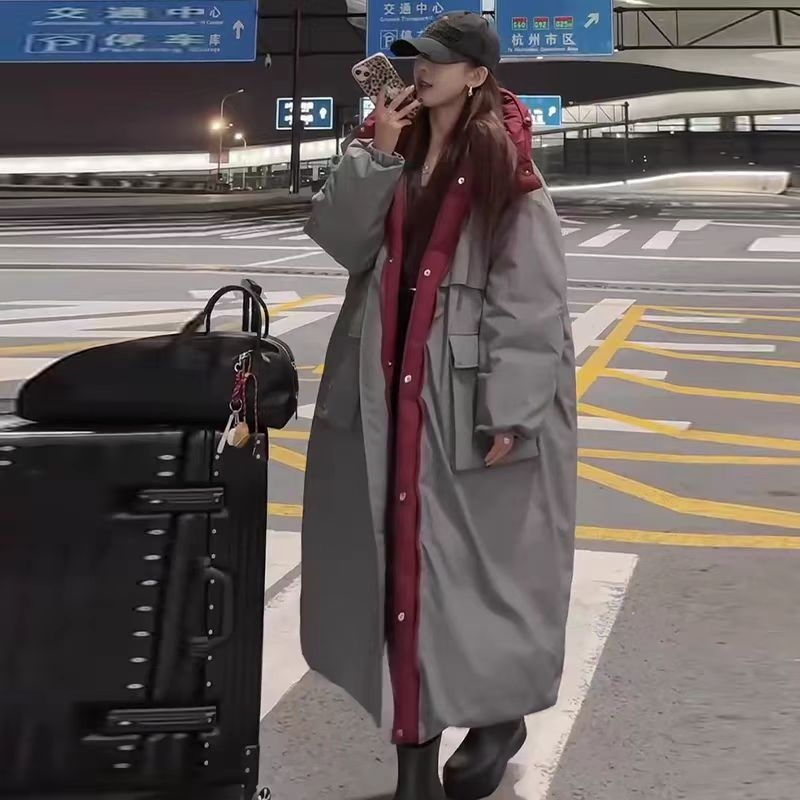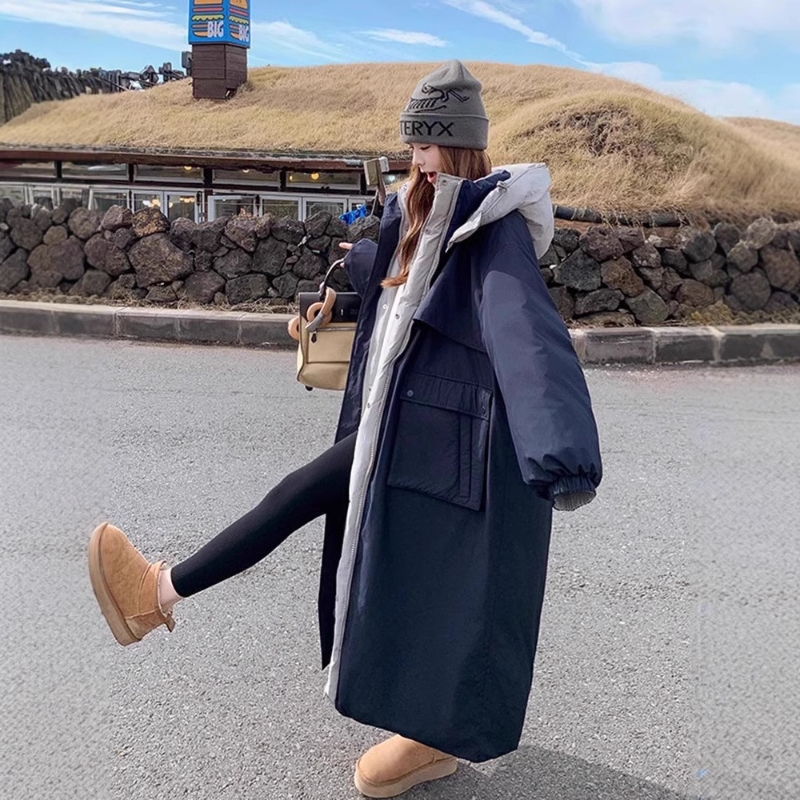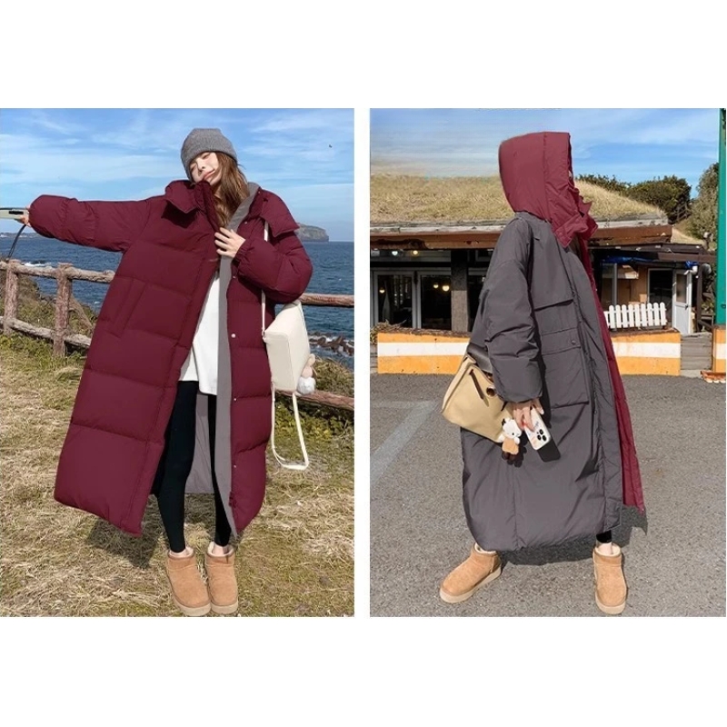 Down Jacket for Women Wear on Both Sides Korean Padding Jacket Long Loose Hooded and Thick Windbreaker New Down Coat