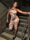 Summer Spaghetti Strap Fashion Jumpsuit New Women Floral Pattern Shirred Hollow Out Casual Asymmetricsal Neck Backless Jumpsuits