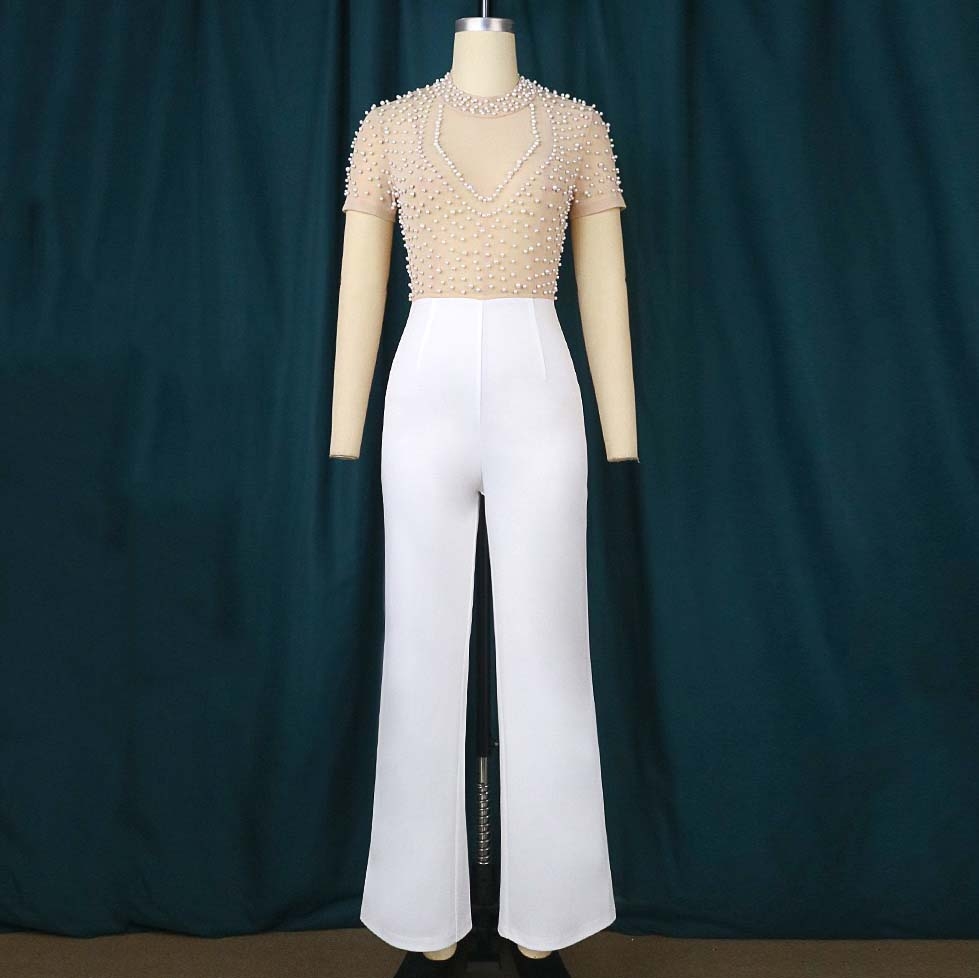 2 reviews for Elegant Jumpsuits & Rompers for Women O Nec Short Sleeve Beaded High Waisted Luxury Female Birthday Dinner Party Overalls Outfit
