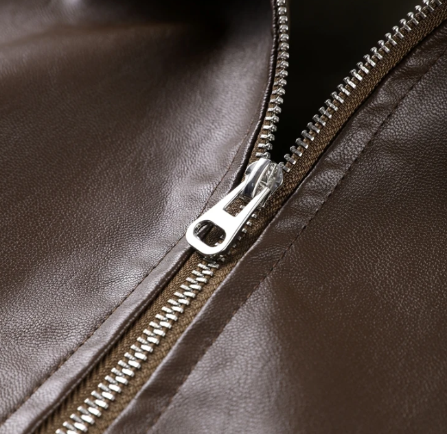 The leather jacket is very loose, the zipper is smooth, and the leather is soft and comfortable. I really like it!