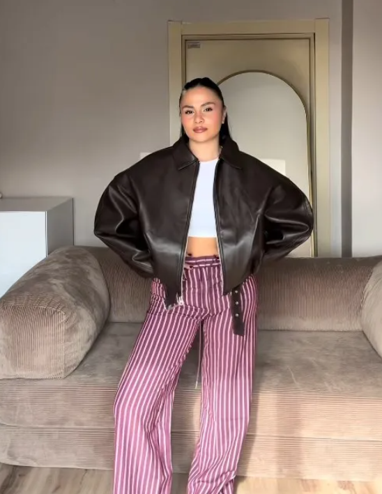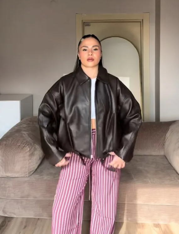 This leather jacket is fashionable and beautiful, odorless, and warm to wear. Friends praise it very much, and of course, the price is also discounted. It is worth buying.