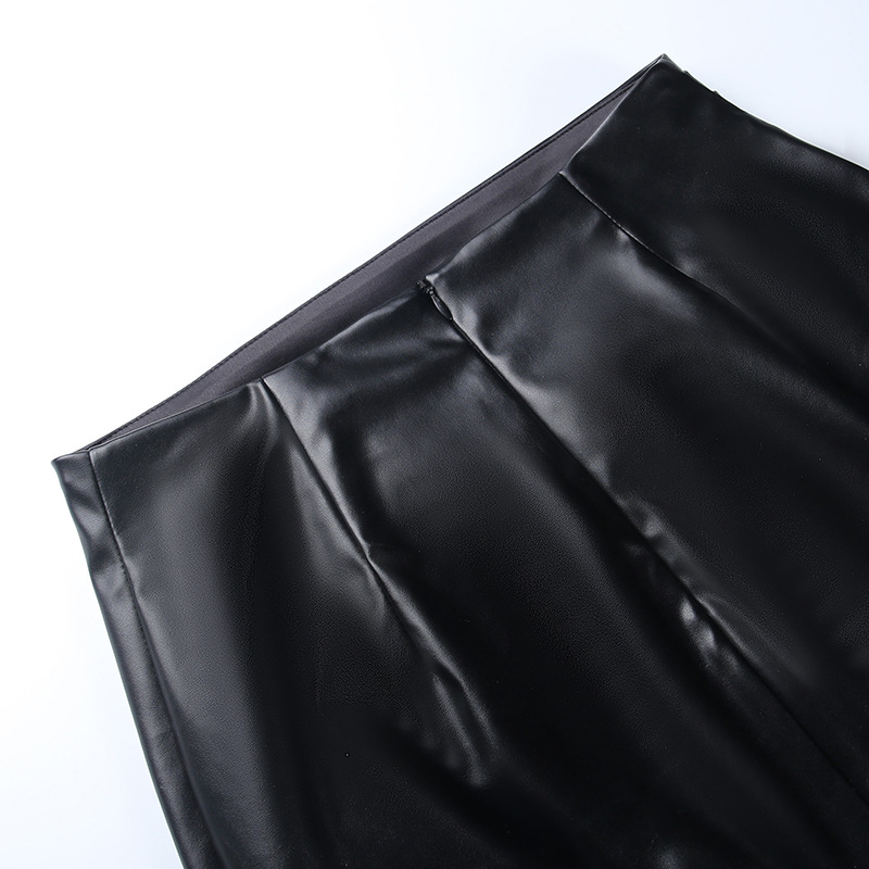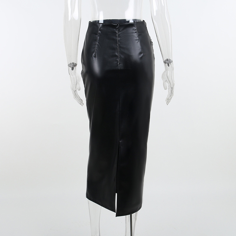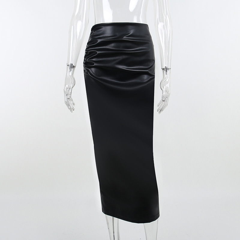 Elegant Skirt Office Lady Fashion Ruched PU Leather Midi Skirts Women Slim High Waist Black Skirts Spring Autumn Bottom 2023 New