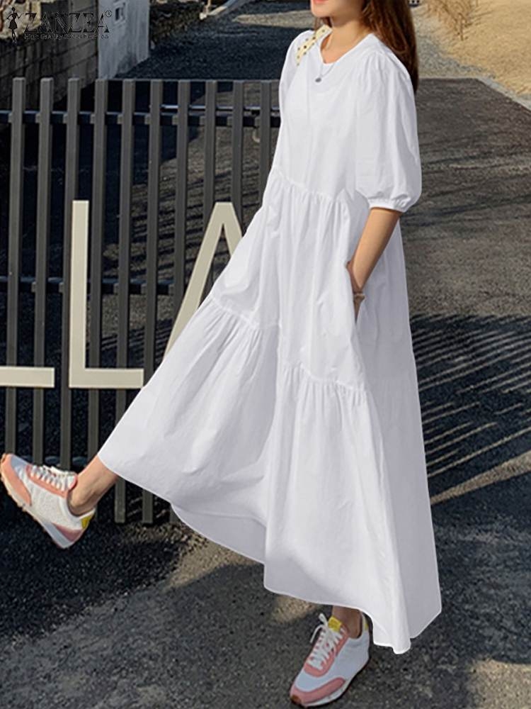 Elegant Solid Dress Women Summer Sundress ZANZEA 2023 Casual Short Sleeve Maxi Vestidos Female O Neck Robe Femme Oversized