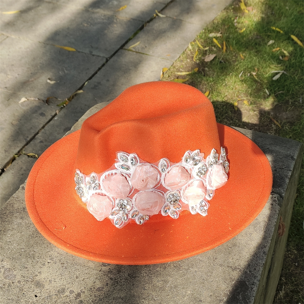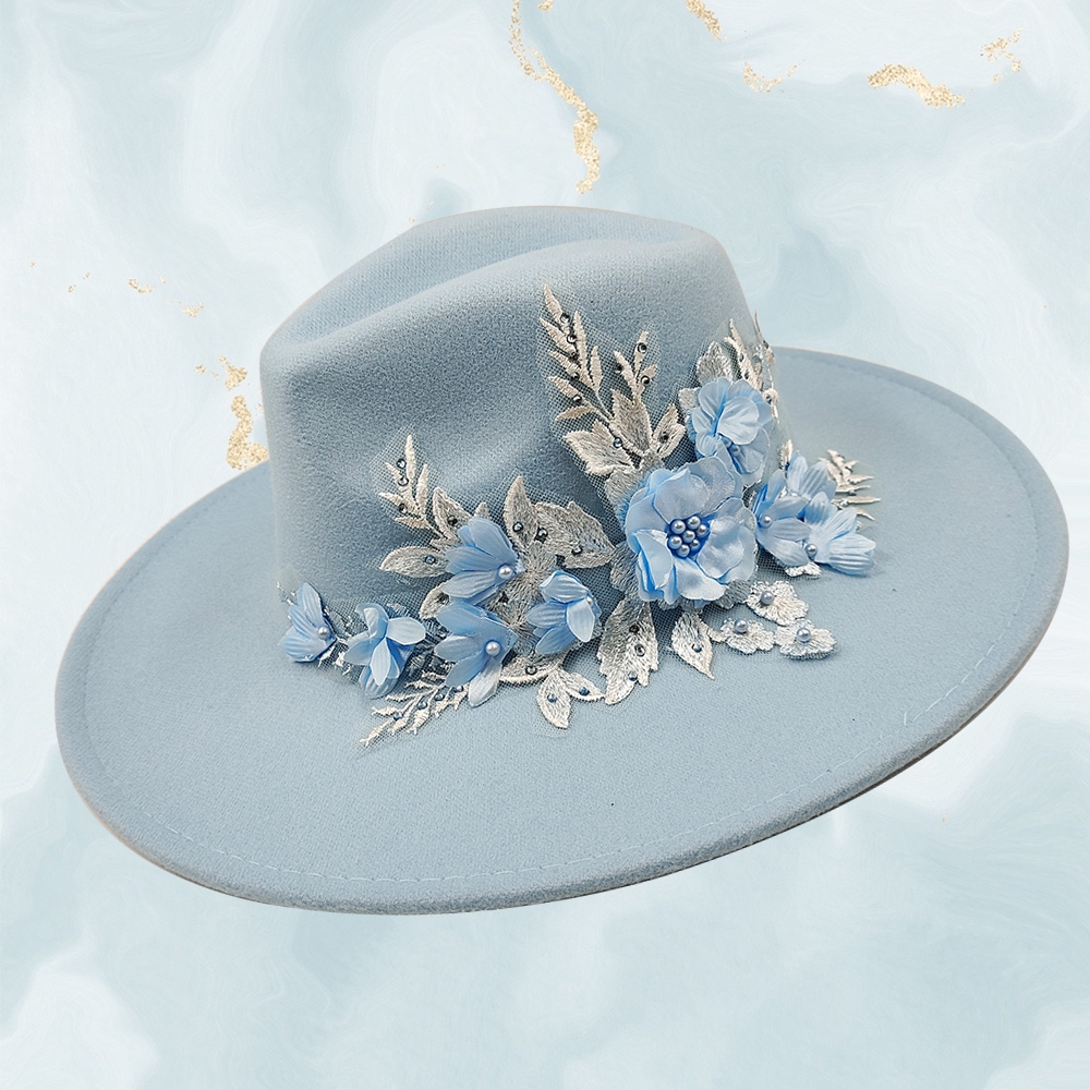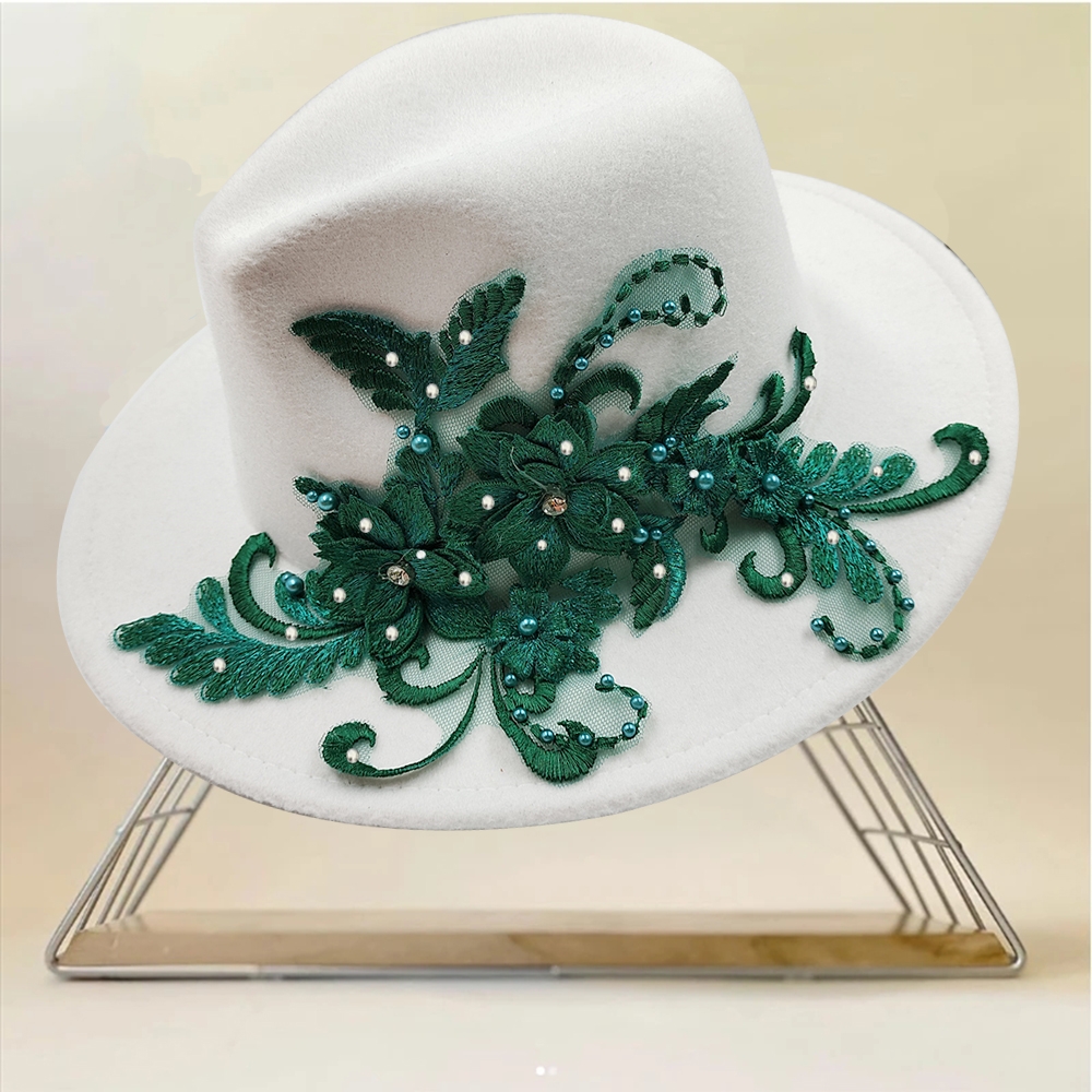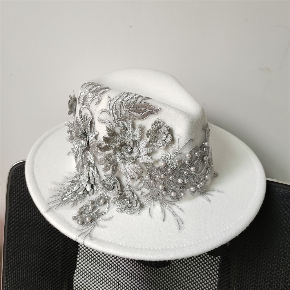 Embroidered three-dimensional flower fedora hat Women’s jazz top hat Spring and autumn panama church fashion elegant wedding Hat