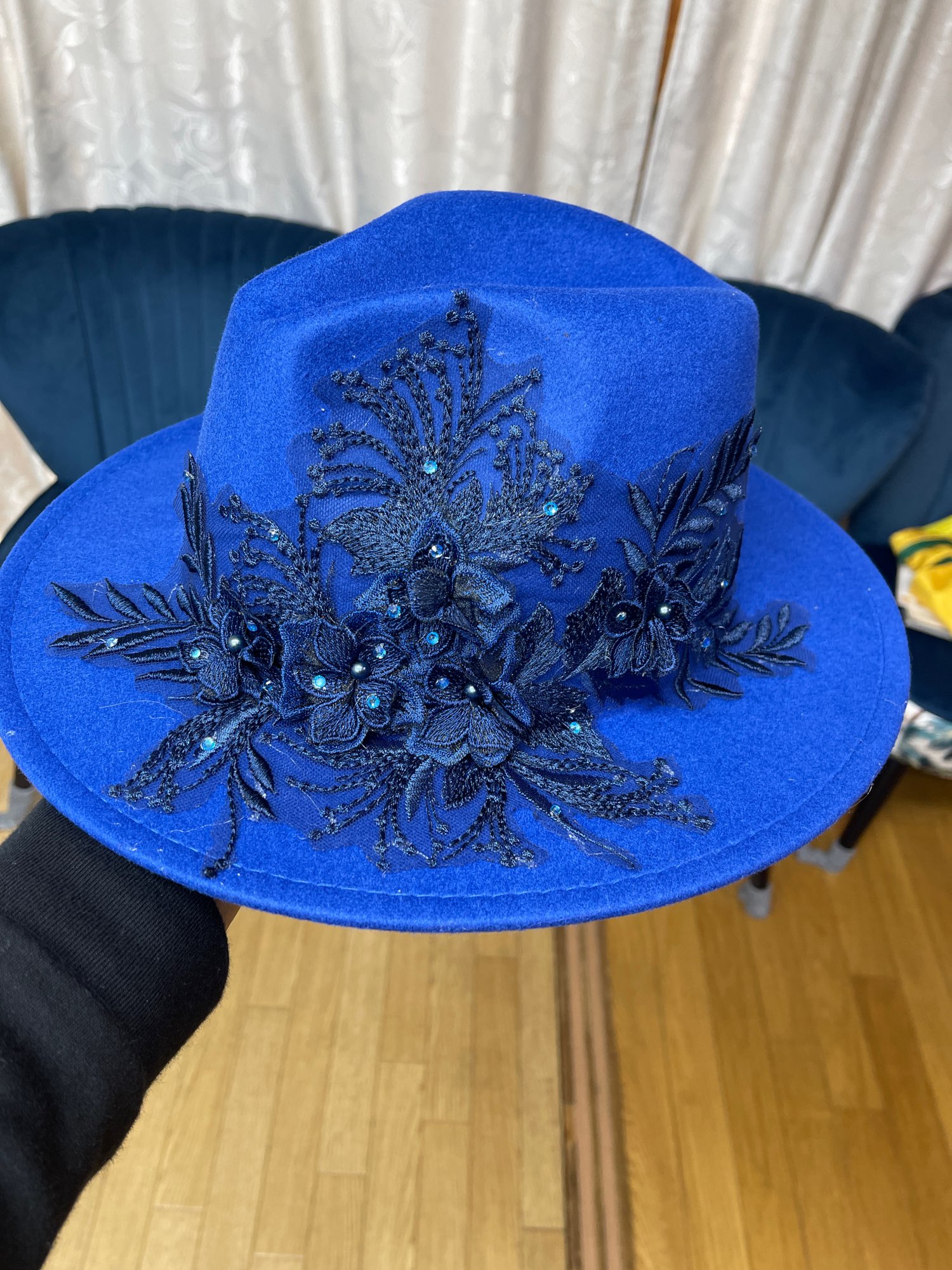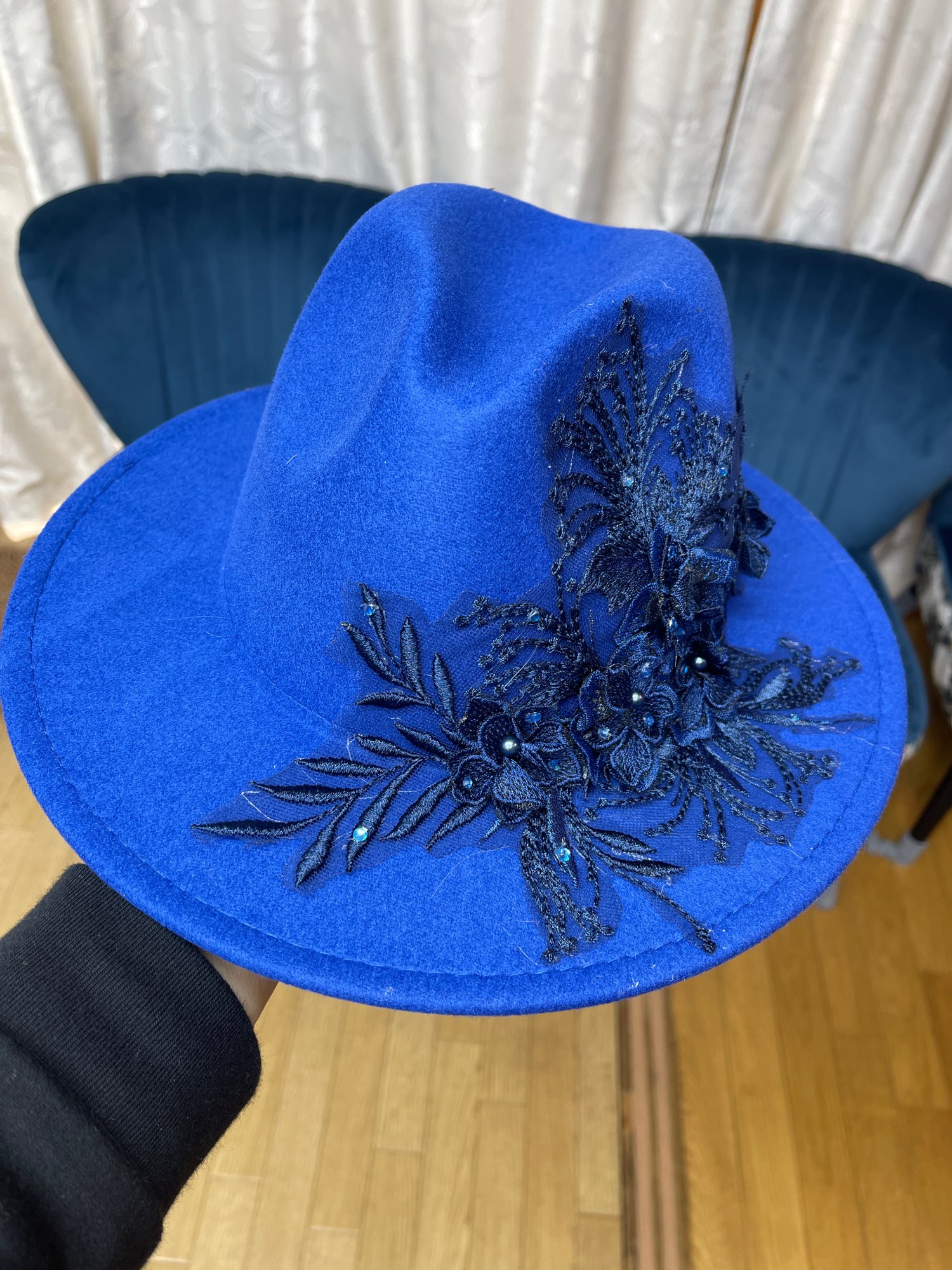 2 reviews for Embroidered three-dimensional flower fedora hat Women’s jazz top hat Spring and autumn panama church fashion elegant wedding Hat