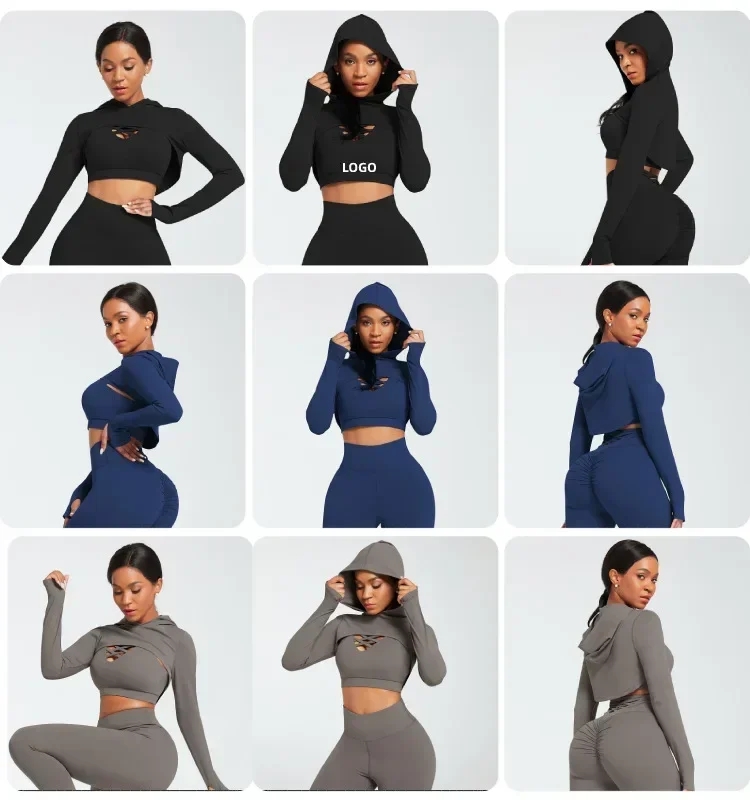Ensemble Female 3 Pieces Yoga Set Gym Workout Clothes for Women Sport Long Sleeve Hoodie Sweater Active Wear Sport Set Tracksuit