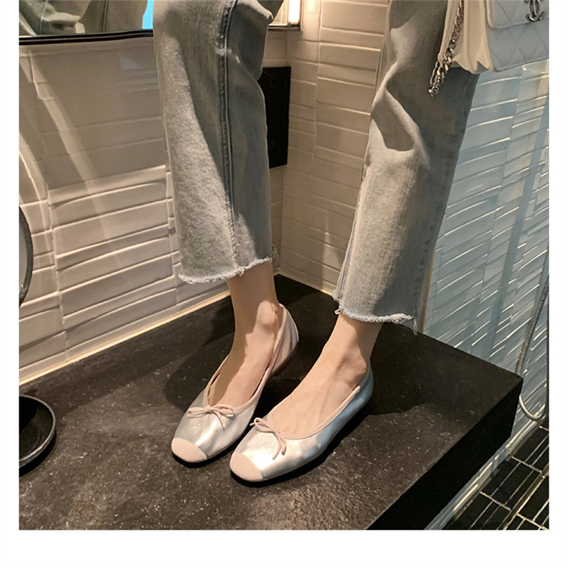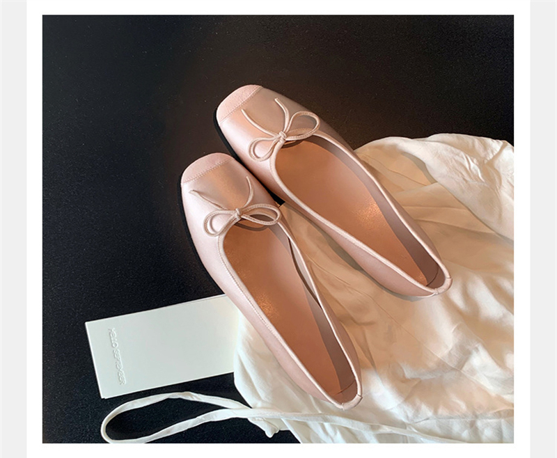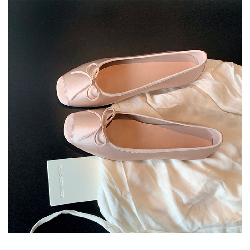 Fashion Elegant Silk Ballerinas Women Pumps Slip On Loafers Round Toe Square Heels Bowknot Casual Spring Autumn Shoes
