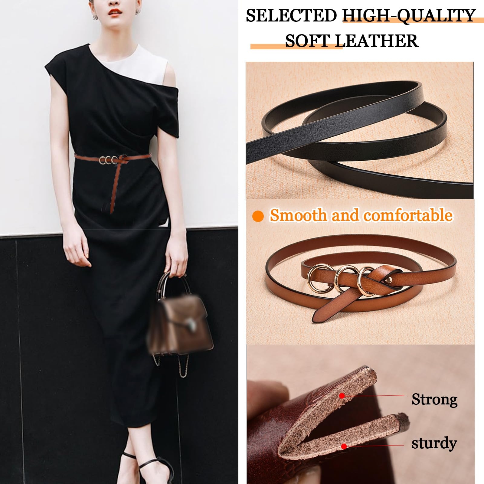 Fashion Genuine Leather Womens Waist Belt High-end Metal Buckle Belt Thin Womens Belts for Jeans Soft Leather Belt Adjust