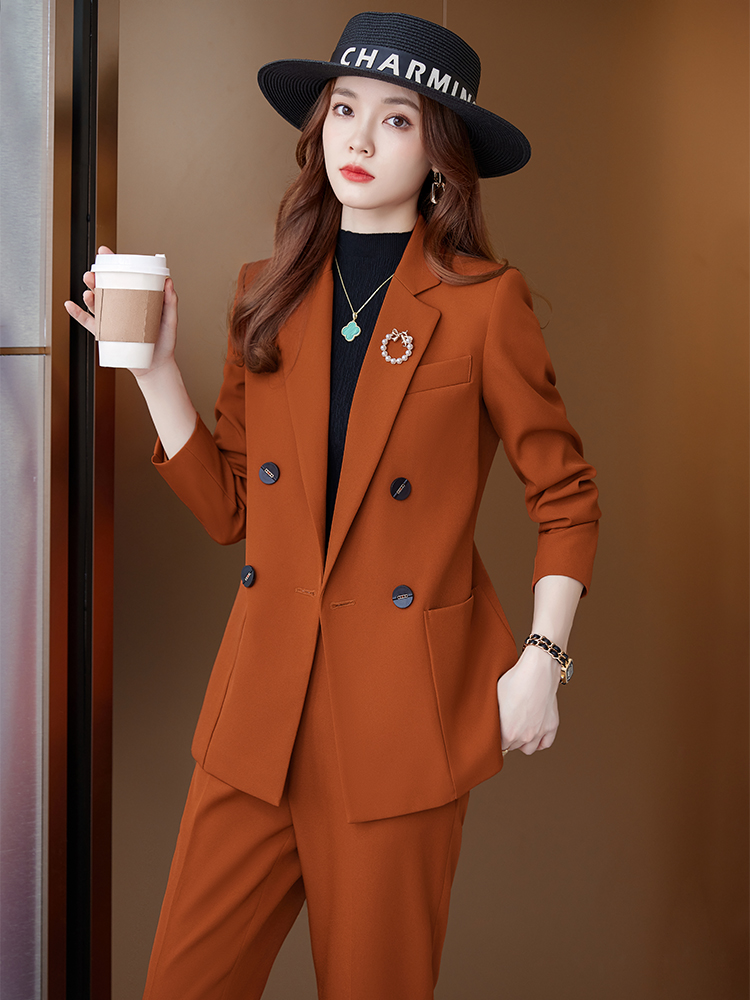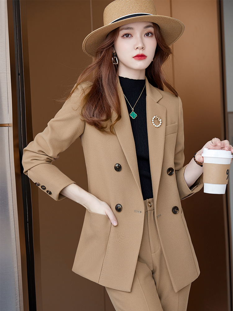 Fashion Ladies Pant Suit Formal Women Office Business Work Wear Blazer And Trouser Beige Black Khaki 2 Piece Set With Pocket