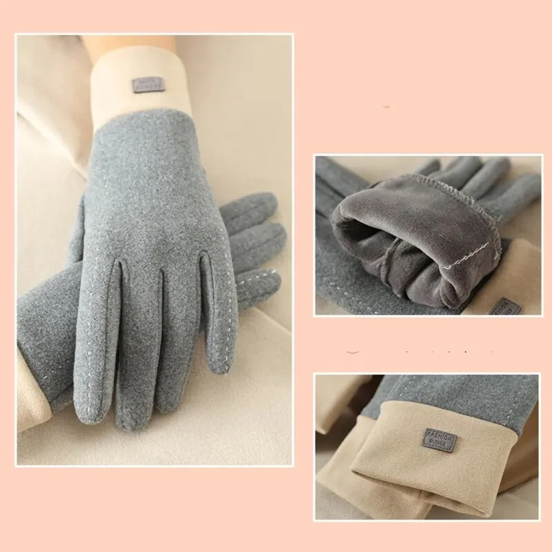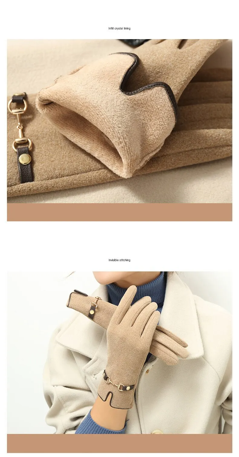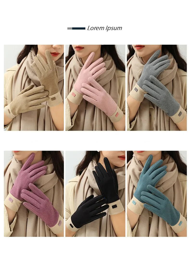 Warm Gloves with Velvet, Suitable for Women to Use in Winter, Touch Screen Elegant Bow Accessories, Cycling and Driving Gloves