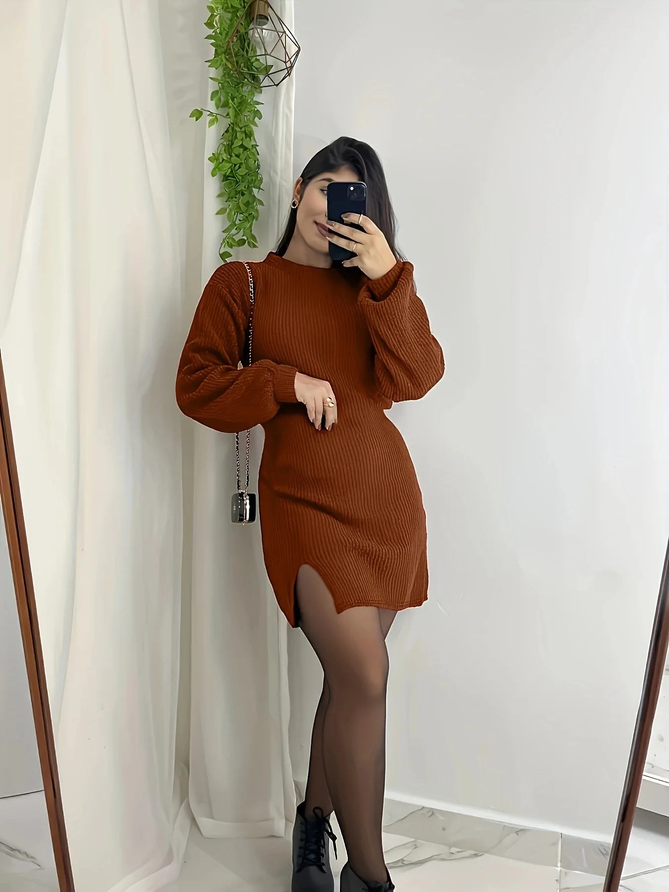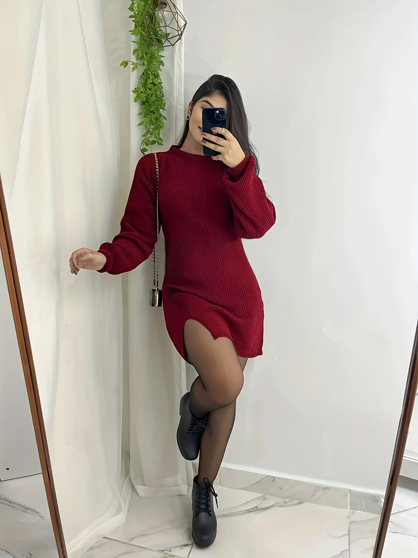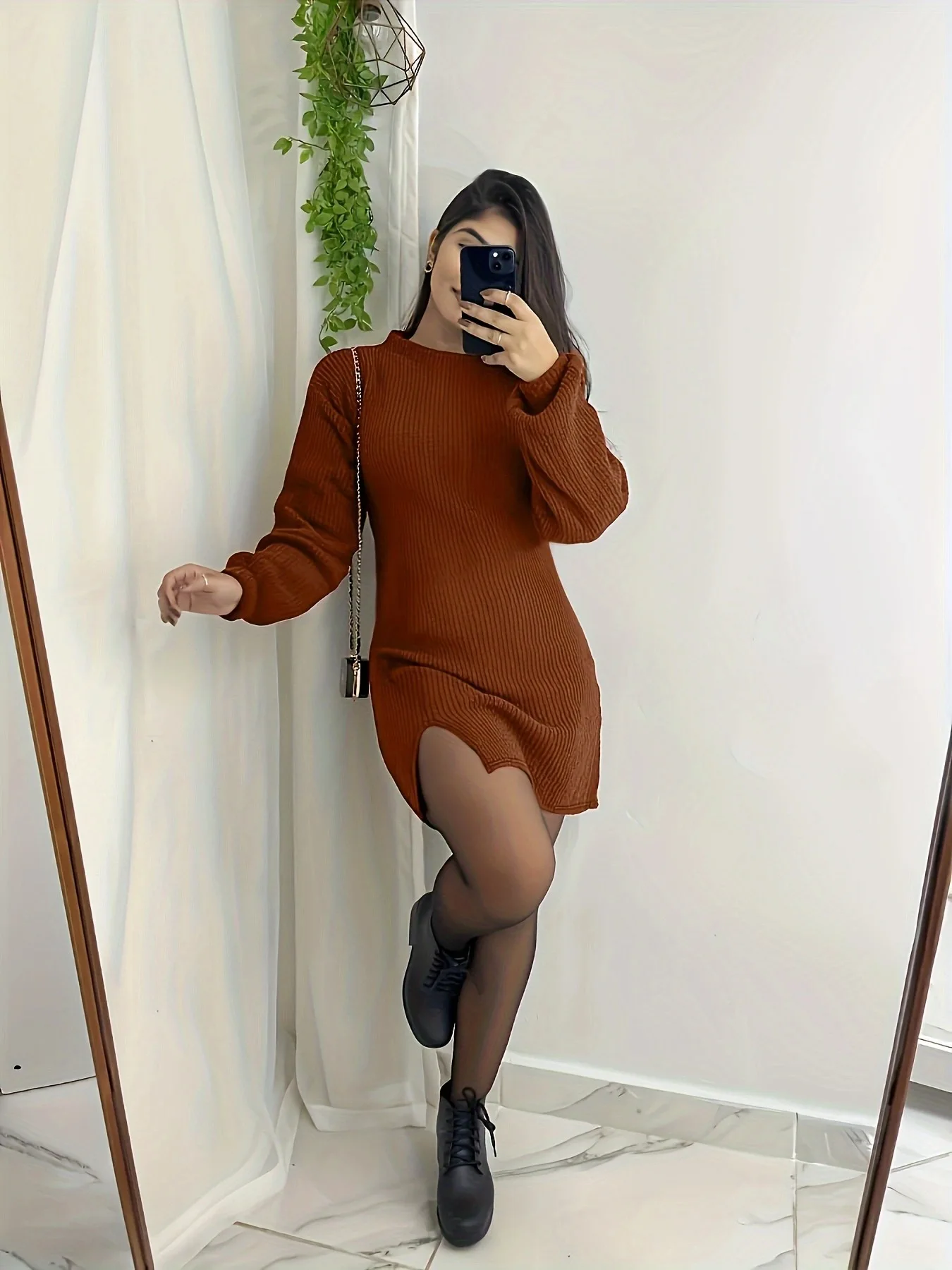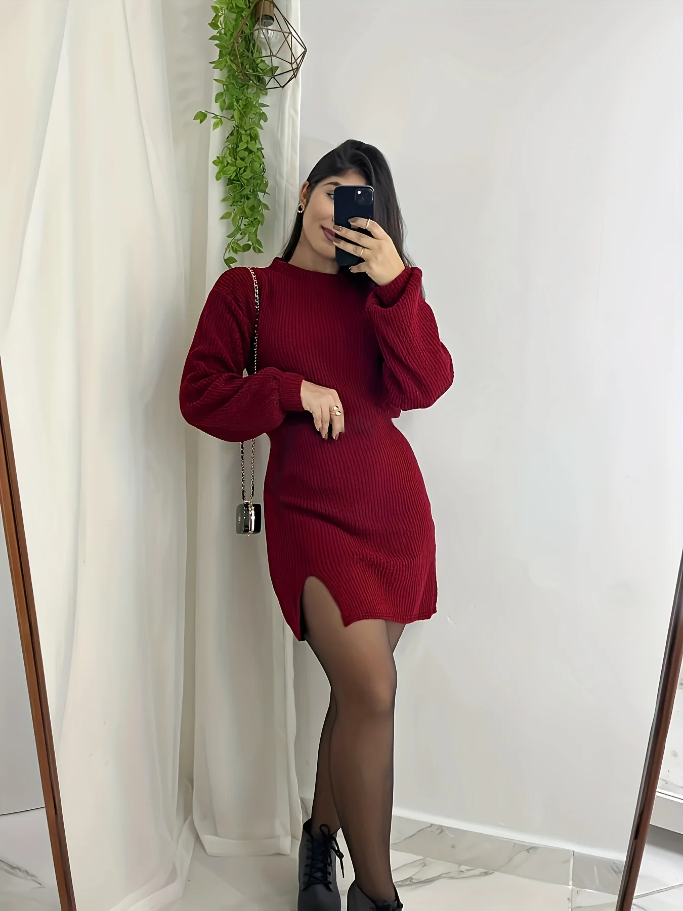Fashion O-neck Long Sleeve Knitted Mini Dress Women Autumn Winter Casual Sweater Office Ladies Dresses For Women Robe Femme