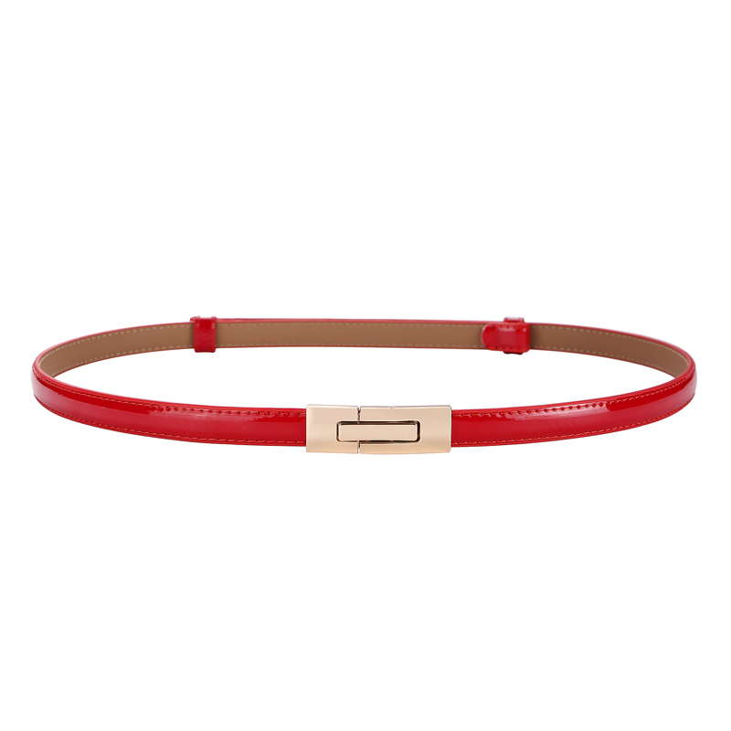 Fashion Patent Leather Women Skinny Leather Belt Thin Cinch Waist with Alloy Buckle for Ladies Wedding Dress Decoration
