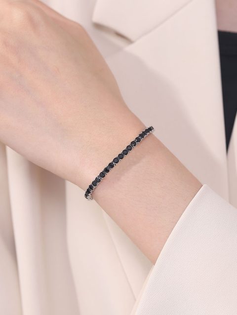 YLMyself 925 Silver Tennis Bracelet 3mm Black CZ Round Pave Unisex Jewelry Gift For Women Men