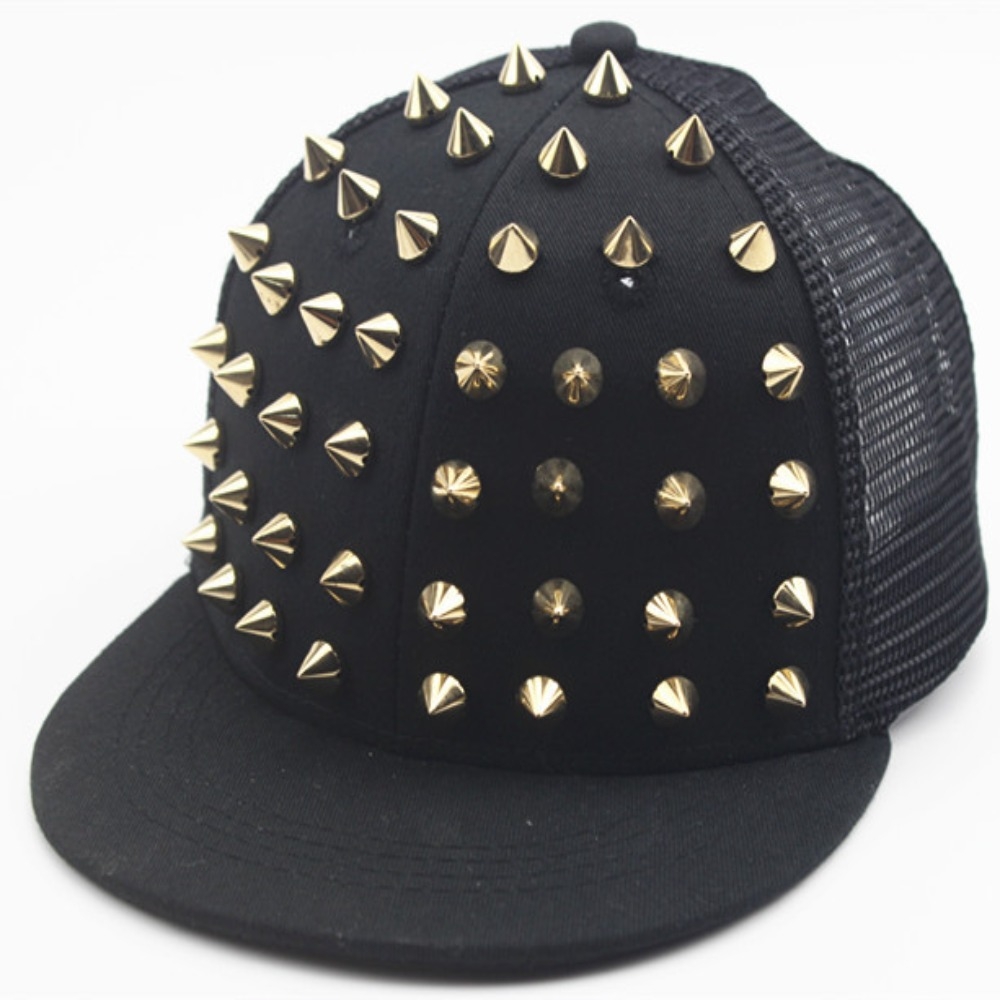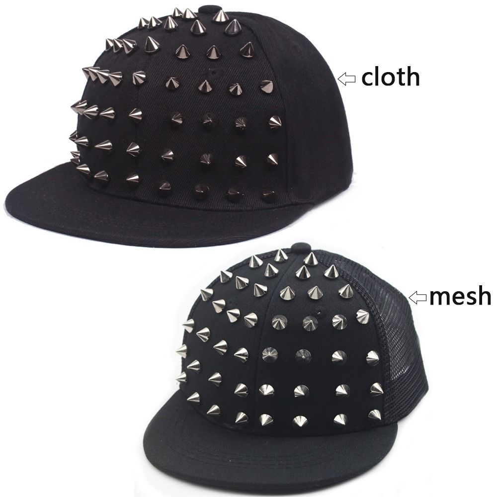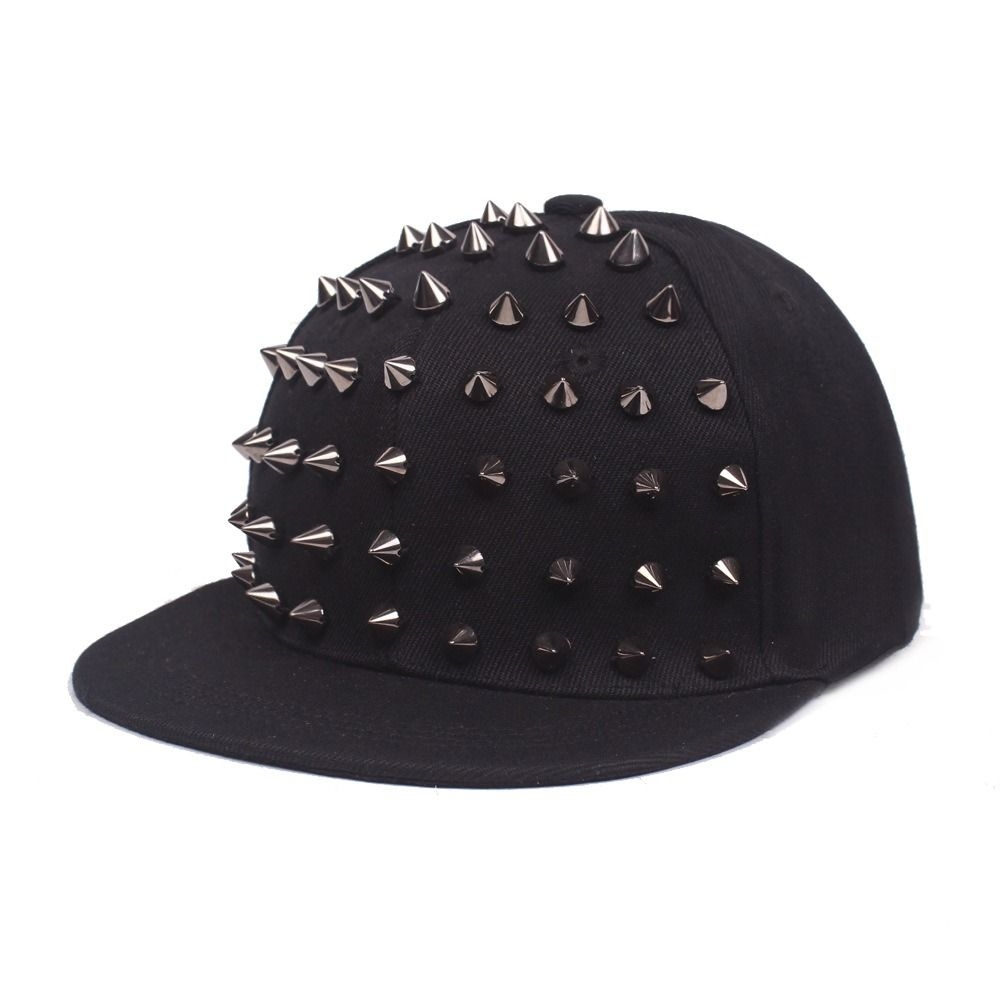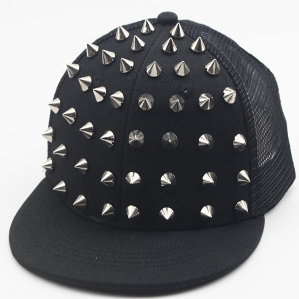 Fashion Sunshade Rivet Flat Hat Breathable Punk Rock Hip Hop Hat Adjustable Baseball Cap Men and Women’s