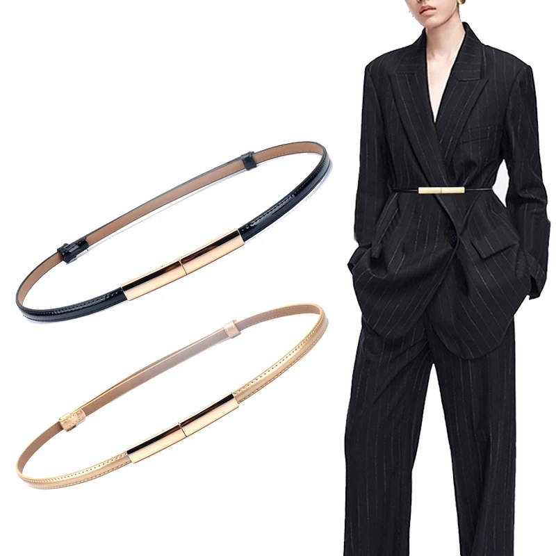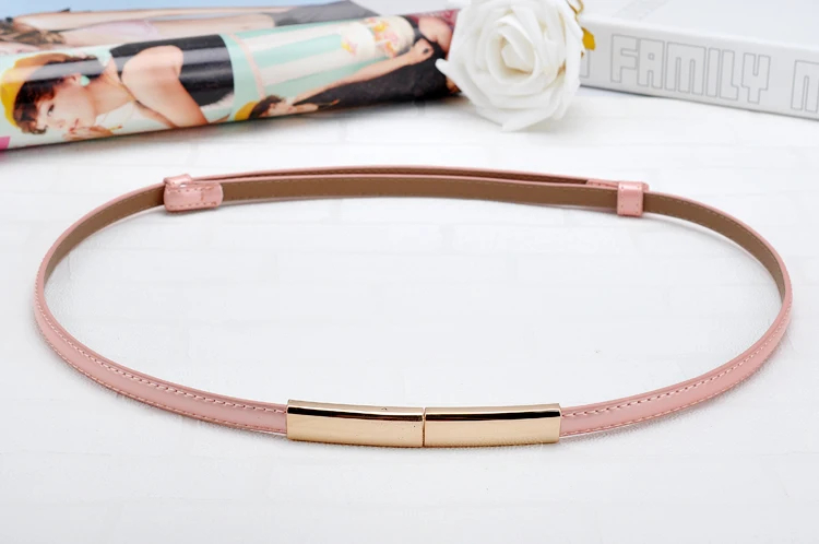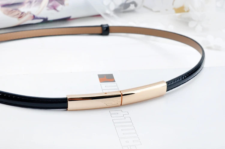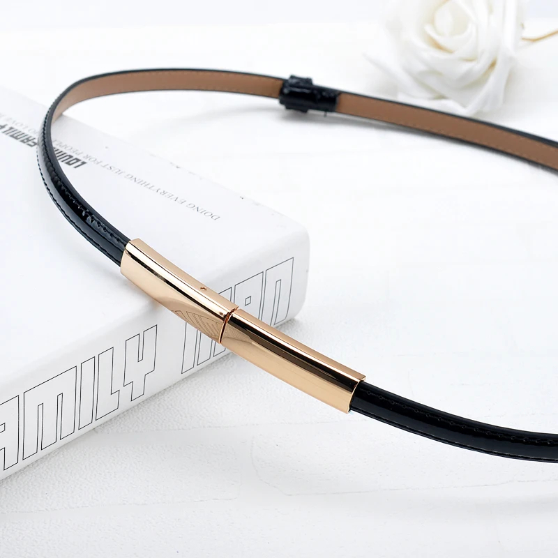 Fashion Thin Luxury Women’s Belt Fashion Lacquer Genuine Leather Gold Metal Buckle For Dress Jeans Decorative Ladies Waistbands