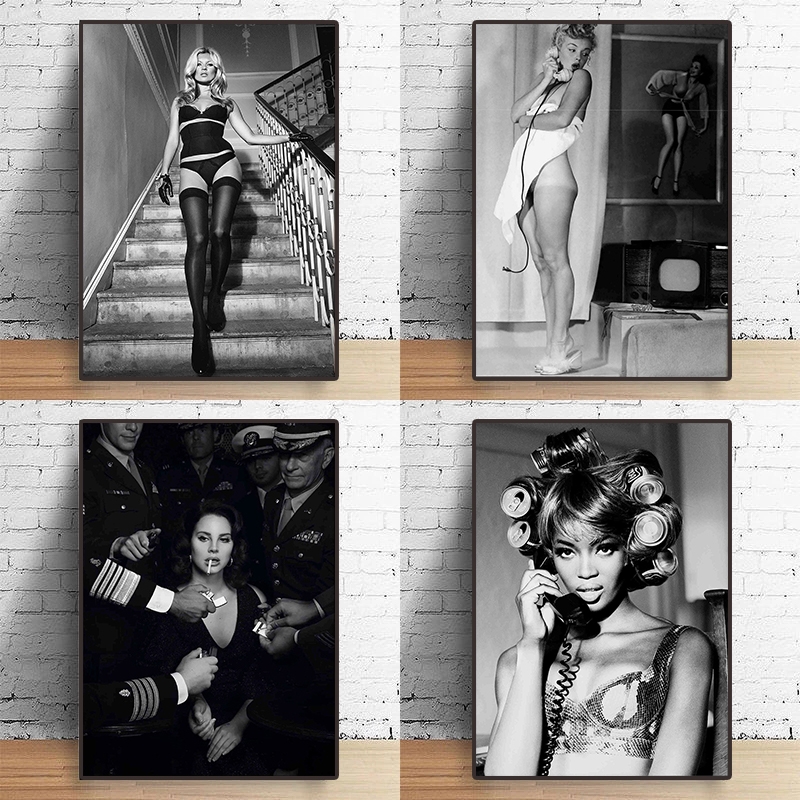 Fashion Women Retro Art Poster La-na Del Rey Naoomi Campbell Canvas Painting Black and White Wall Art Pictures Home Room Decor