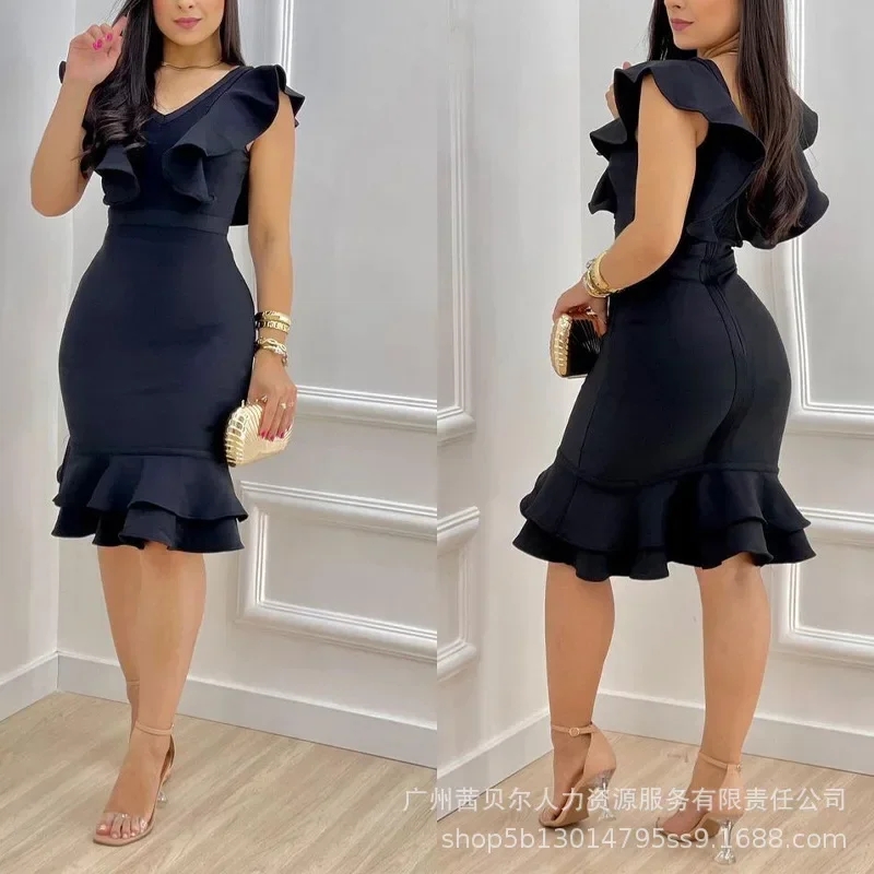 Fashion Womens Dresses New Black Ruffled Dress Women