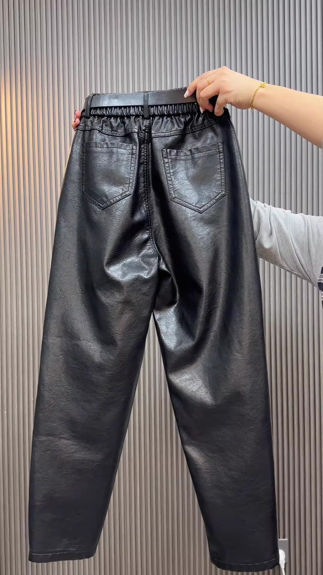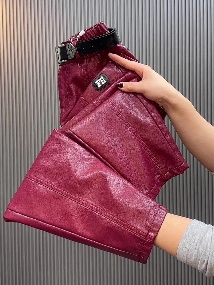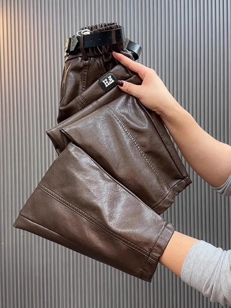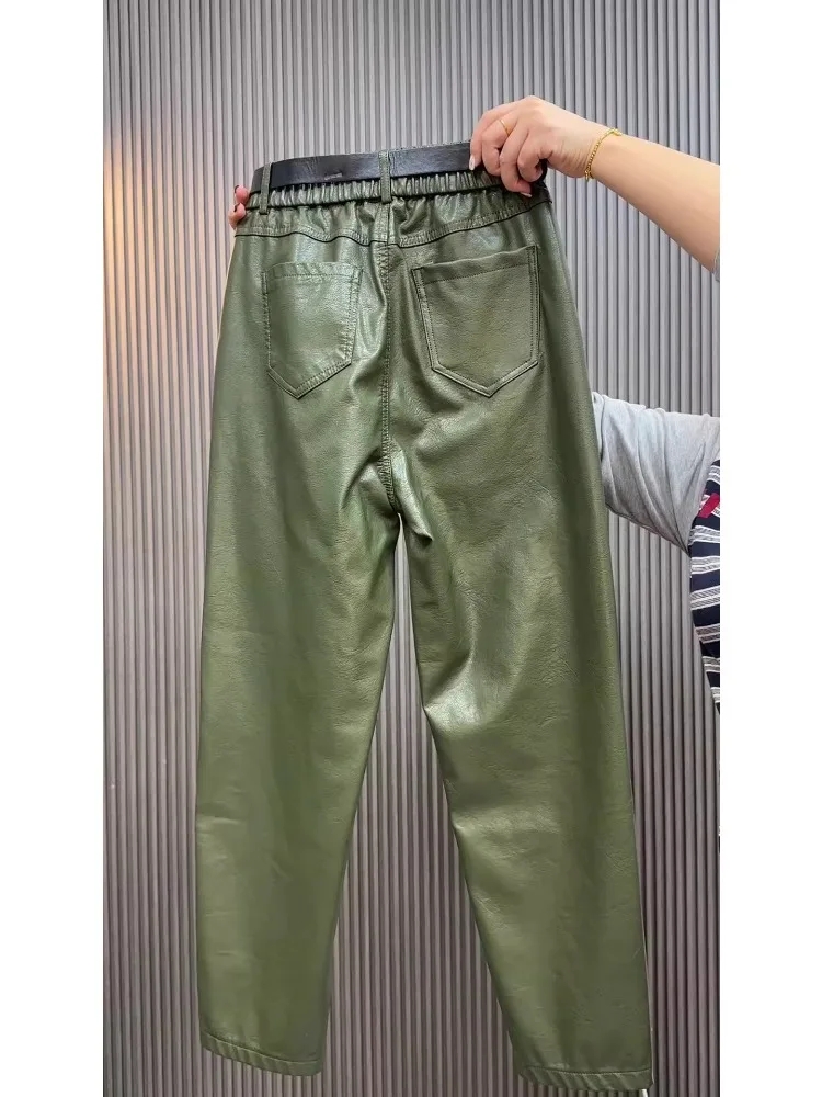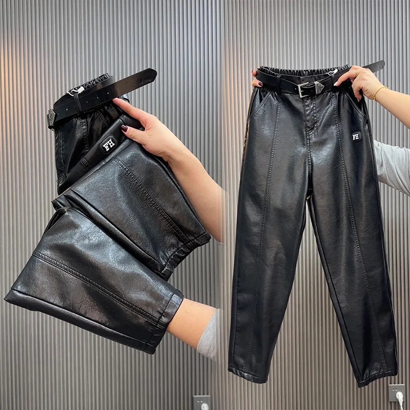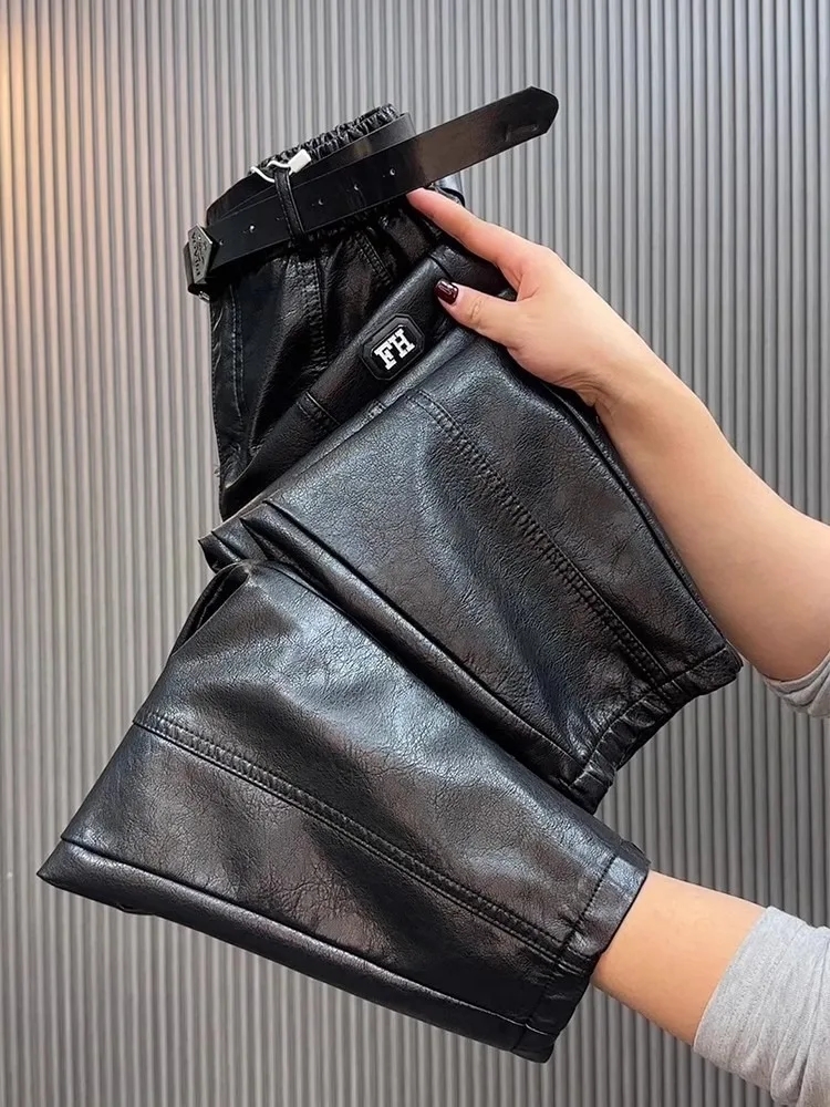 Fashion Y2k Leather Pants High Quality PU Casual Straight Leg Pant Loose Slimming Plus Size Highs Waist Haren Trousers Women