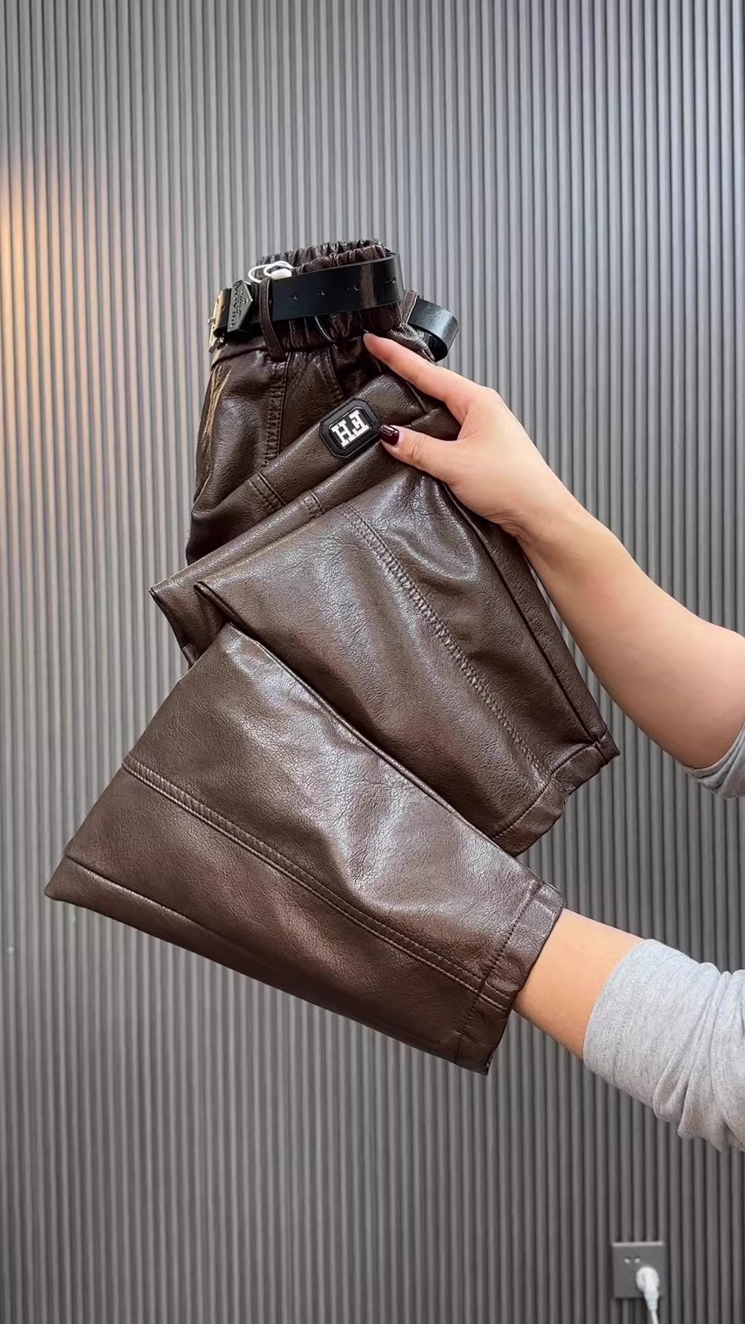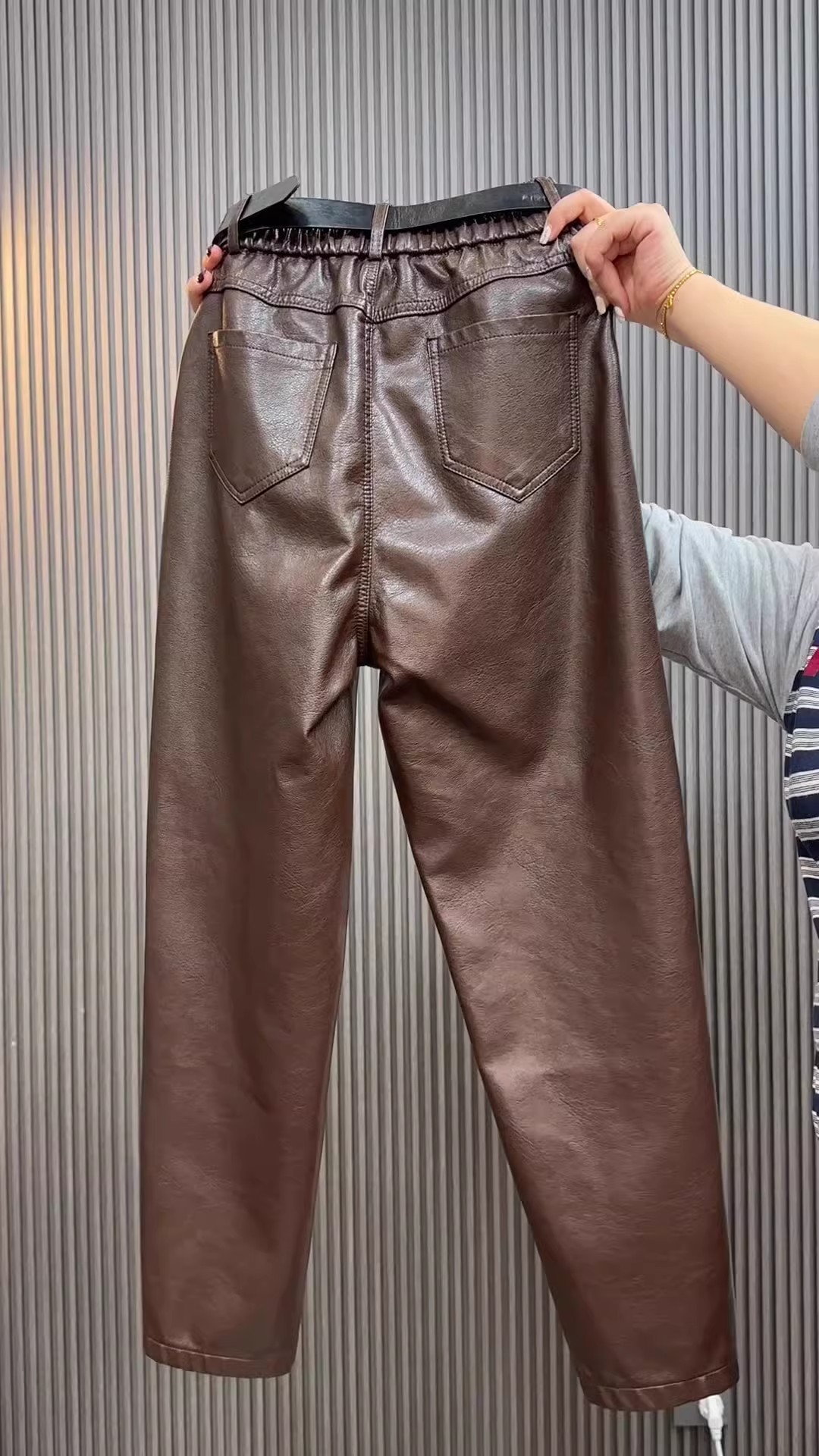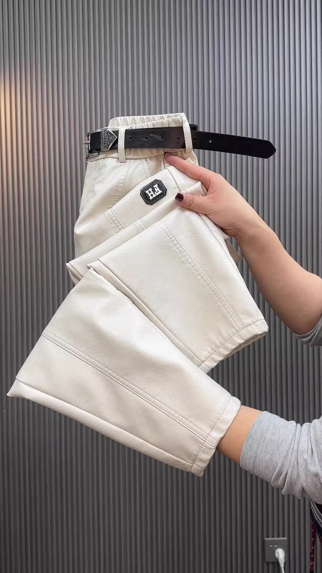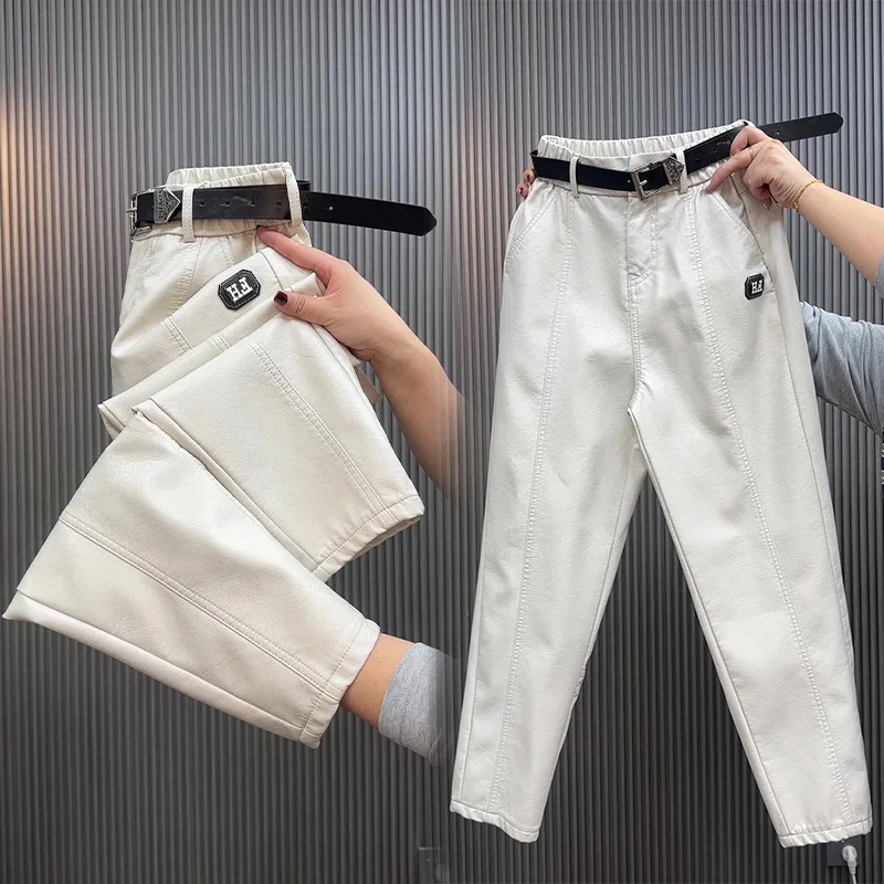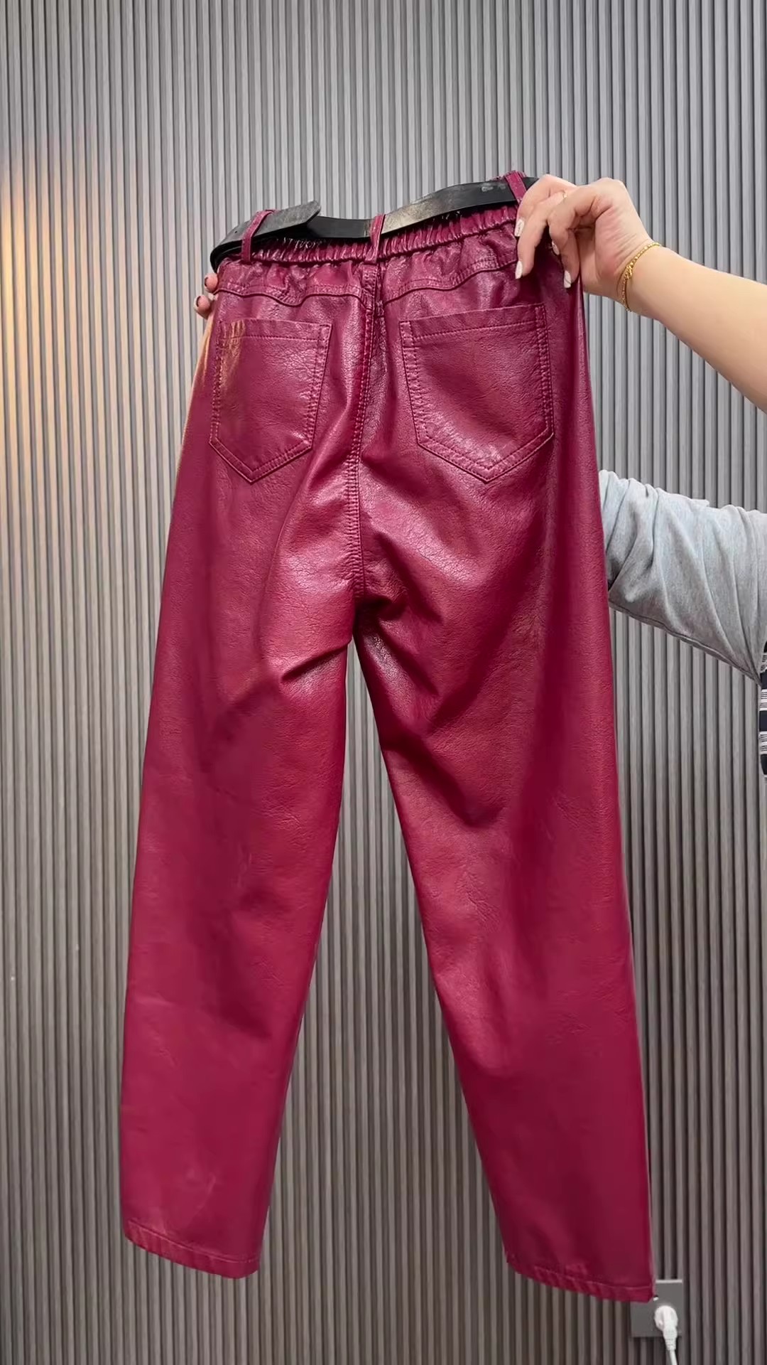Fashion Y2k Leather Pants High Quality PU Casual Straight Leg Pant Loose Slimming Plus Size Highs Waist Haren Trousers Women