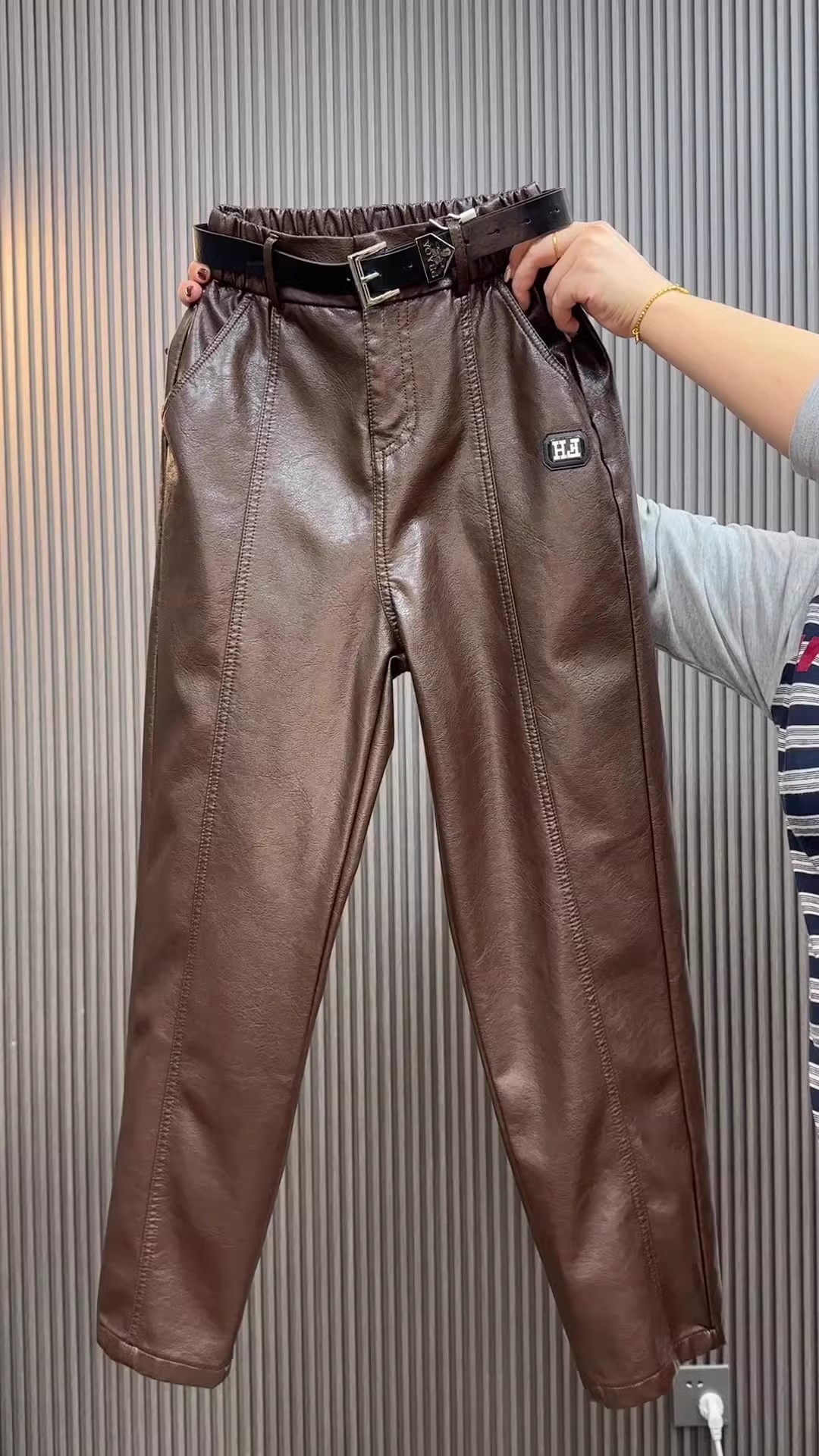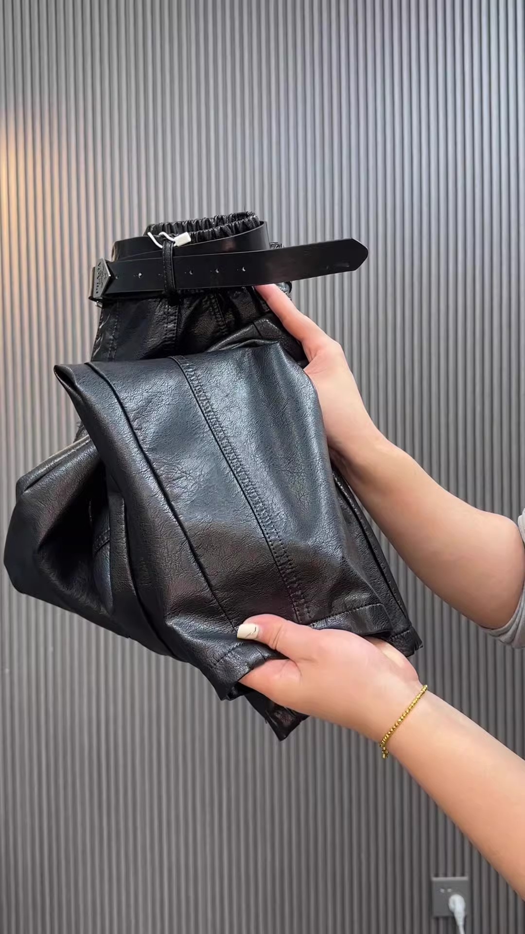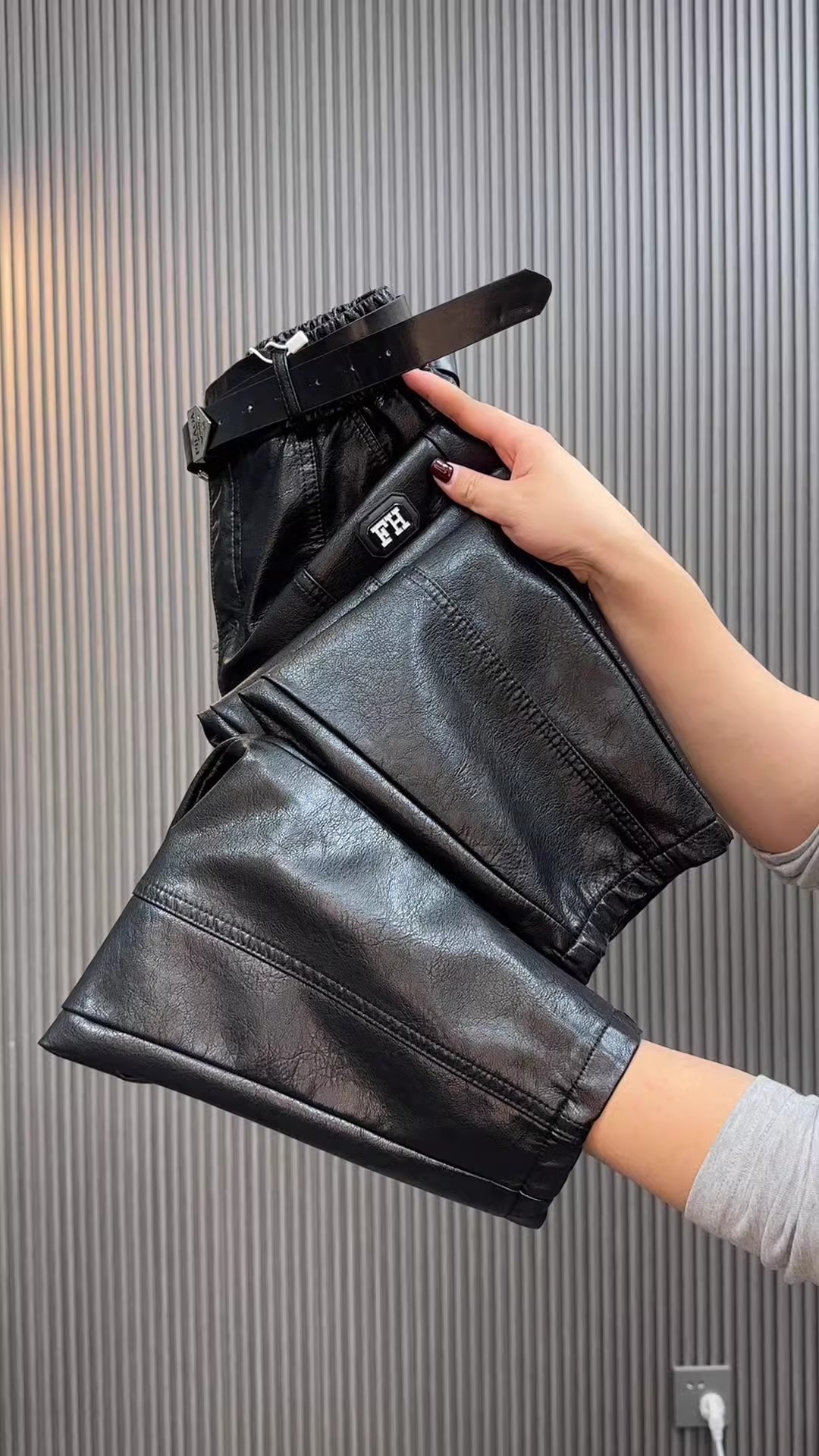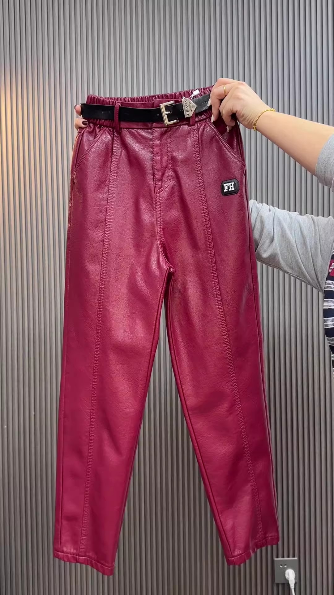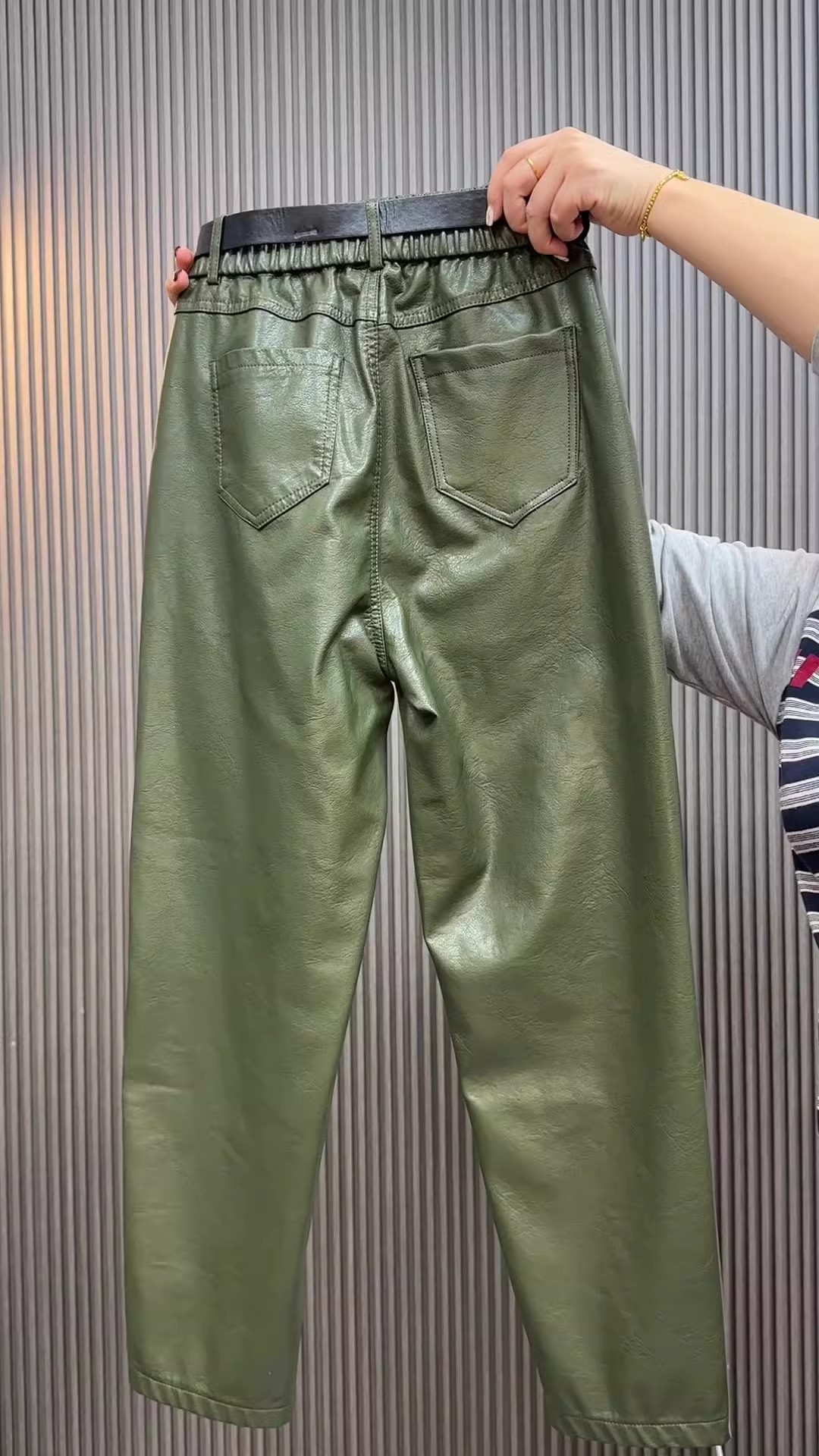 Fashion Y2k Leather Pants High Quality PU Casual Straight Leg Pant Loose Slimming Plus Size Highs Waist Haren Trousers Women