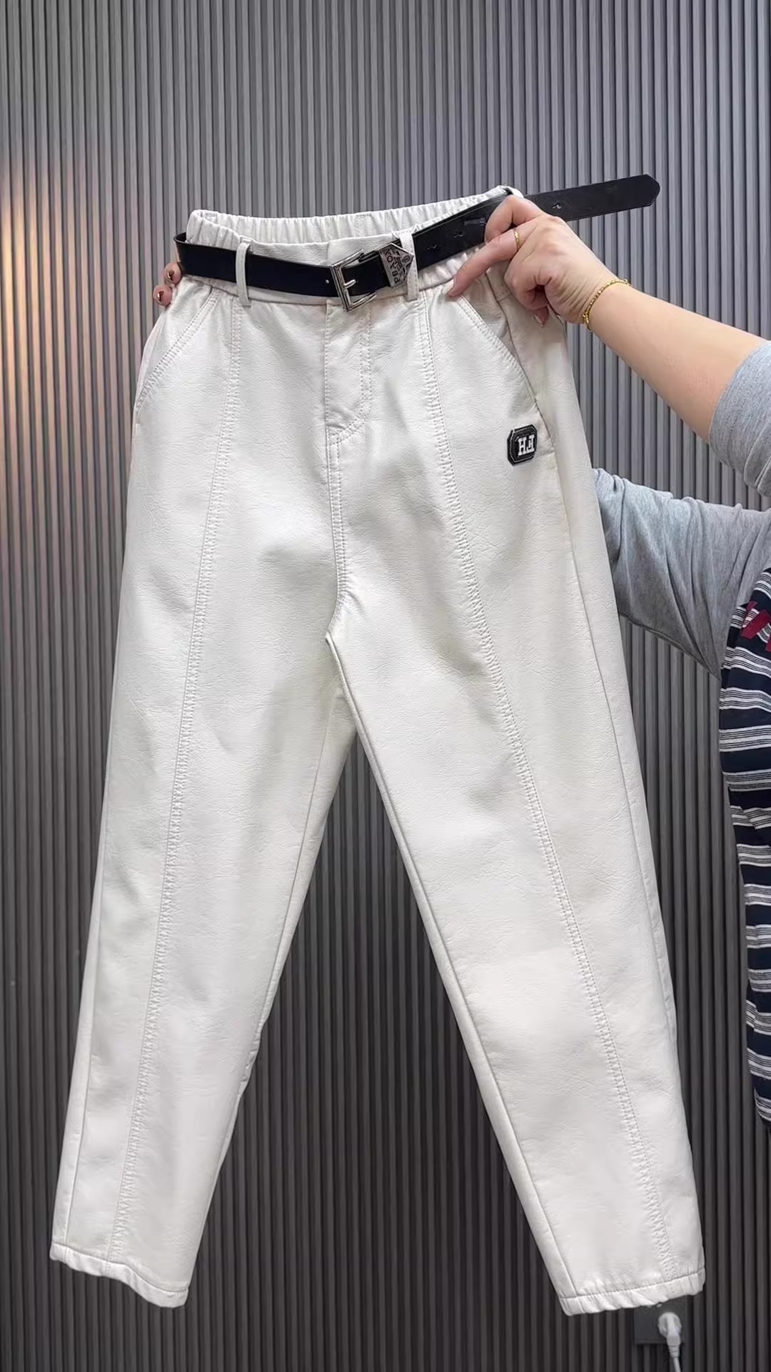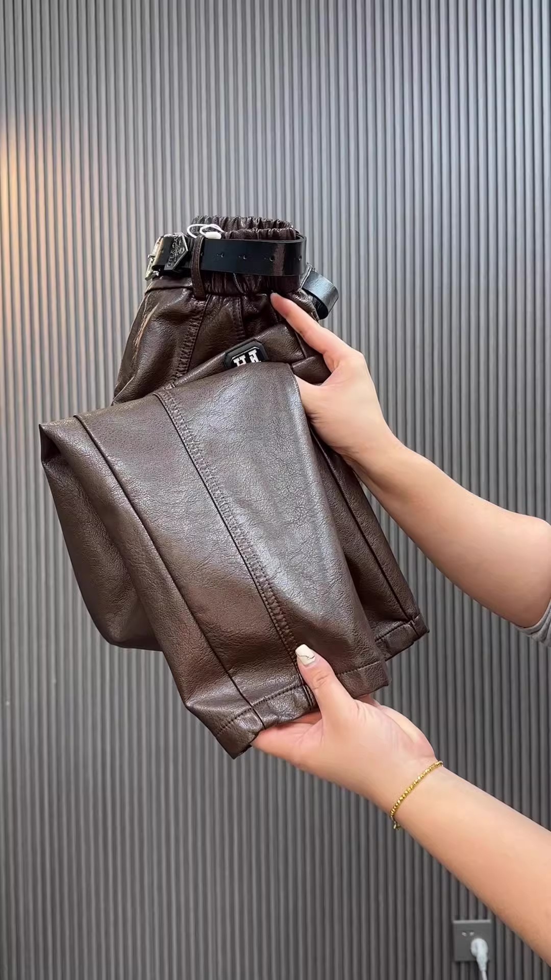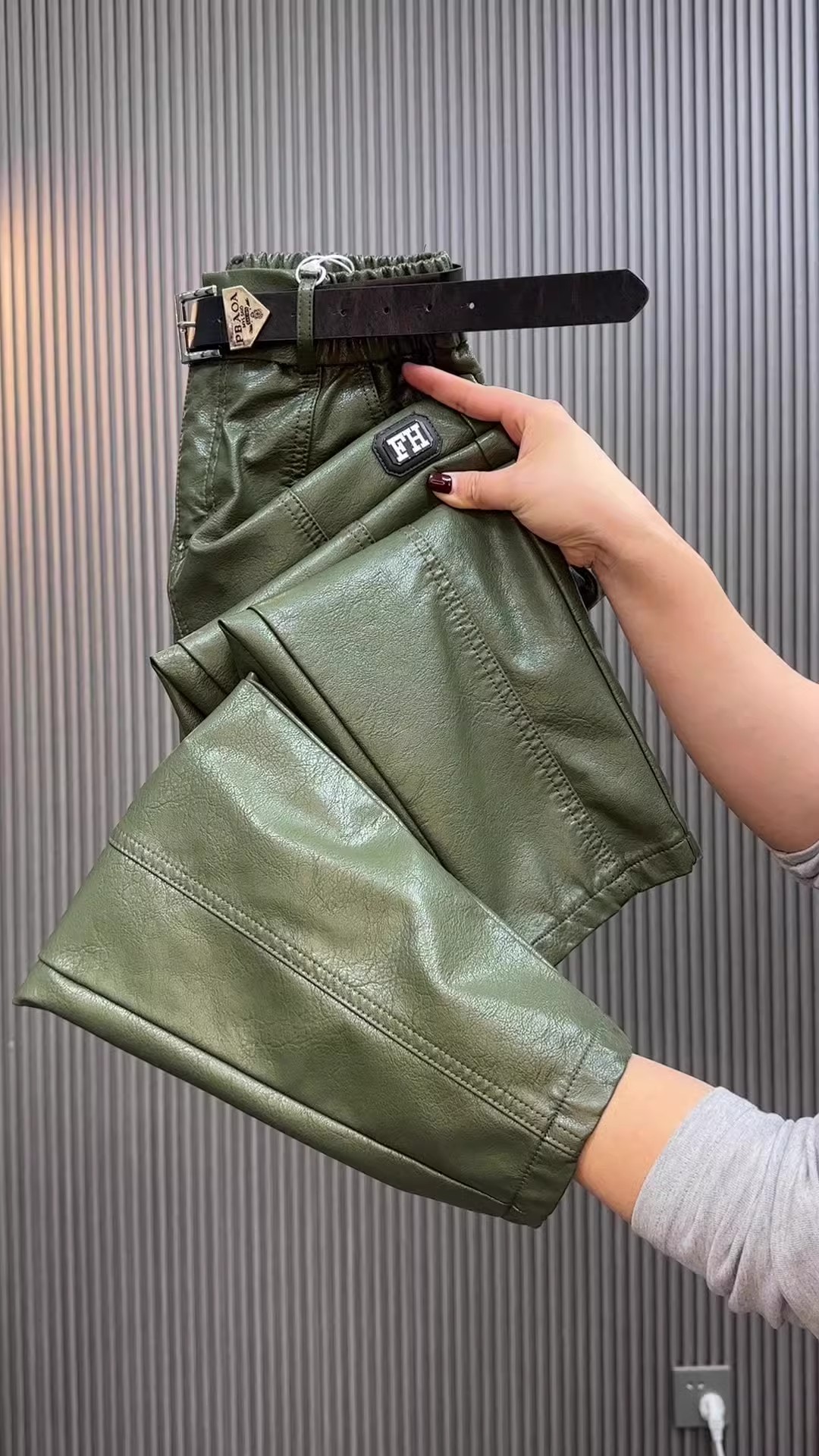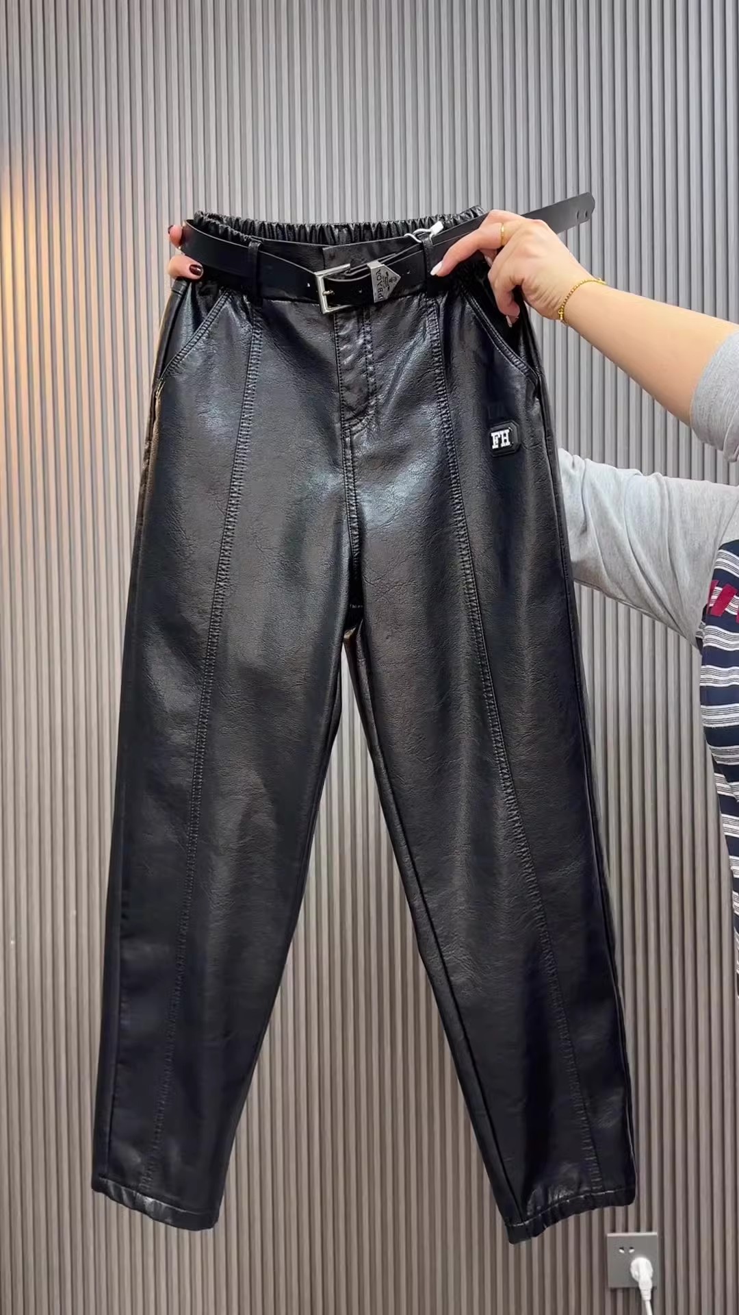 Fashion Y2k Leather Pants High Quality PU Casual Straight Leg Pant Loose Slimming Plus Size Highs Waist Haren Trousers Women