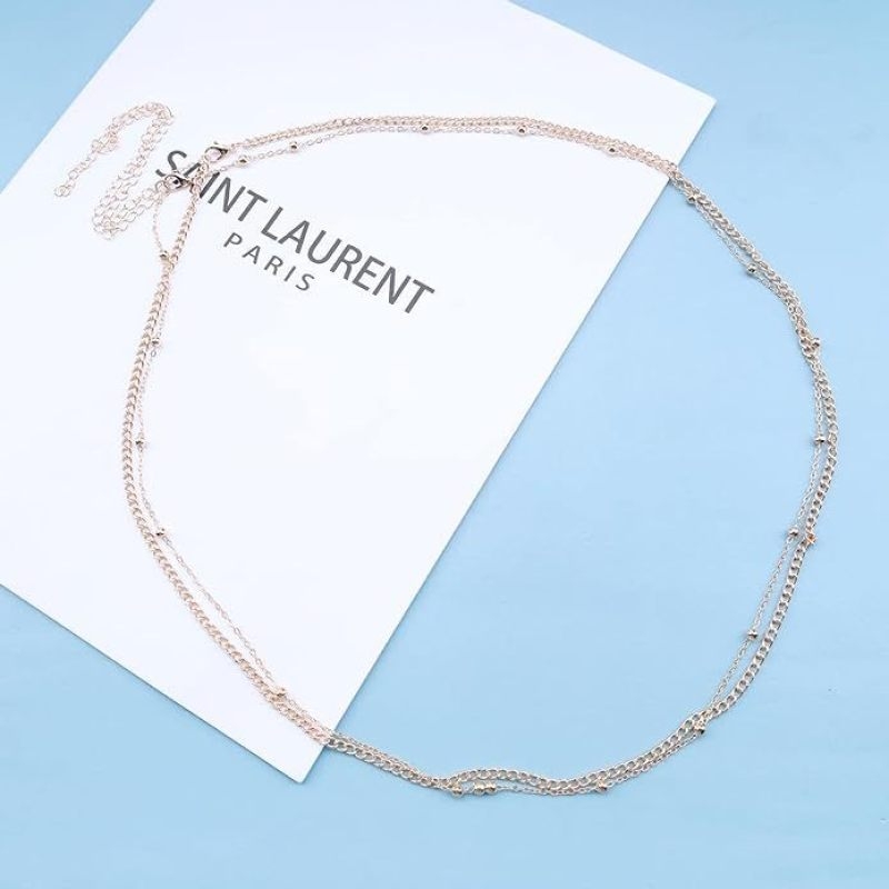 Fashionable and Sexy Round Bead Chain Double Waist Chain Simple Metal Thick Chain Body Chain Women’s Belly Waist Decoration