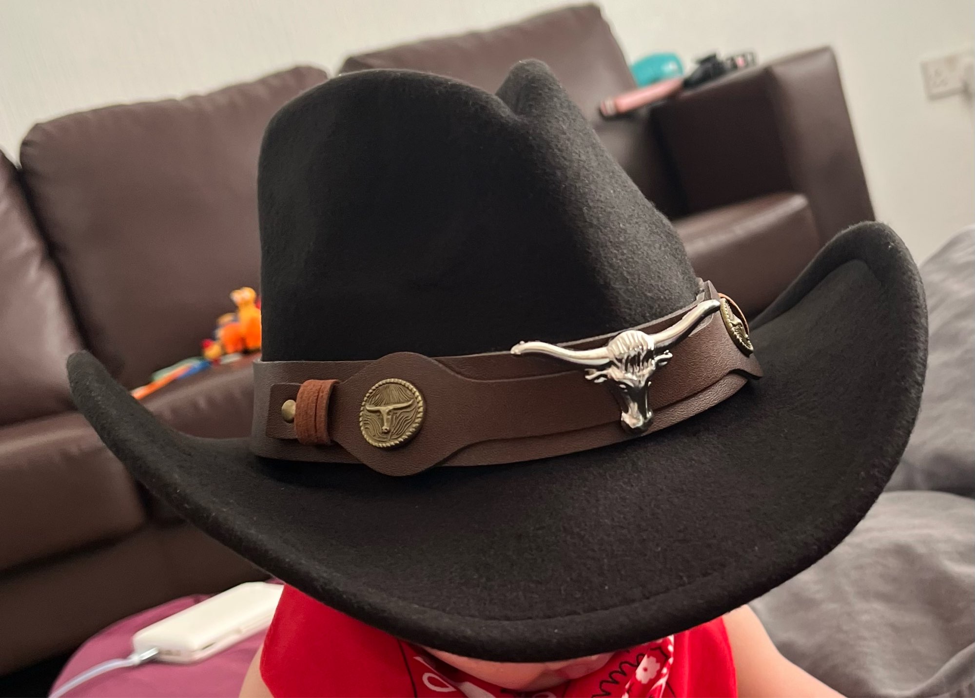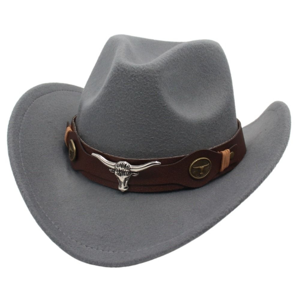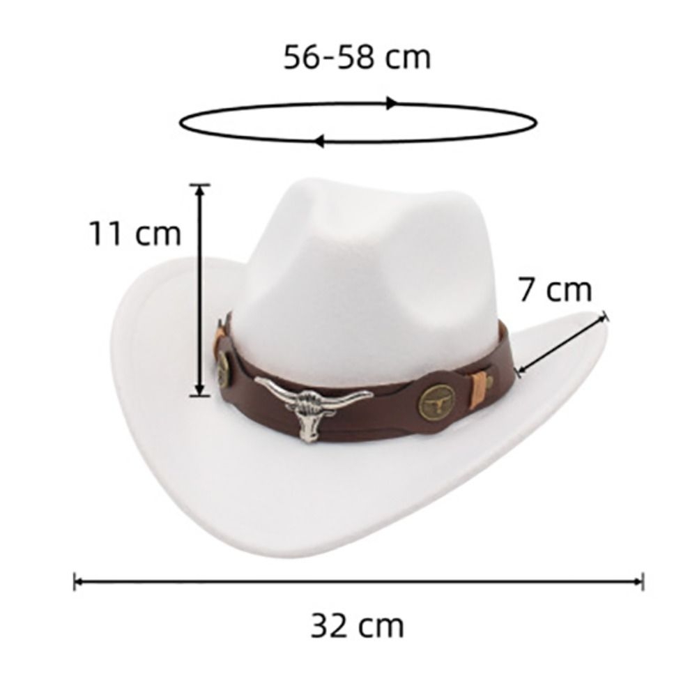 Felt Western Cowboy Hat Ox Head Accessories with Cow Band Tibetan Style Top Hat Ethnic Style Soft Roll Brim Cowgirl Cap Children