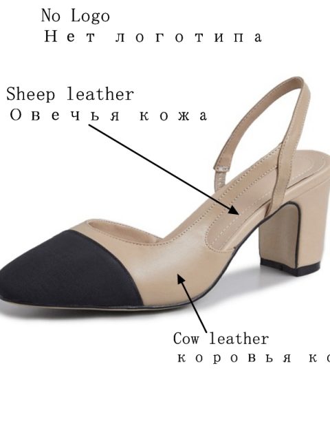Big Size 45 Women Slingbacks Shoes High Heels Thick High Heel Leather Mixed Colors Pumps Ladies