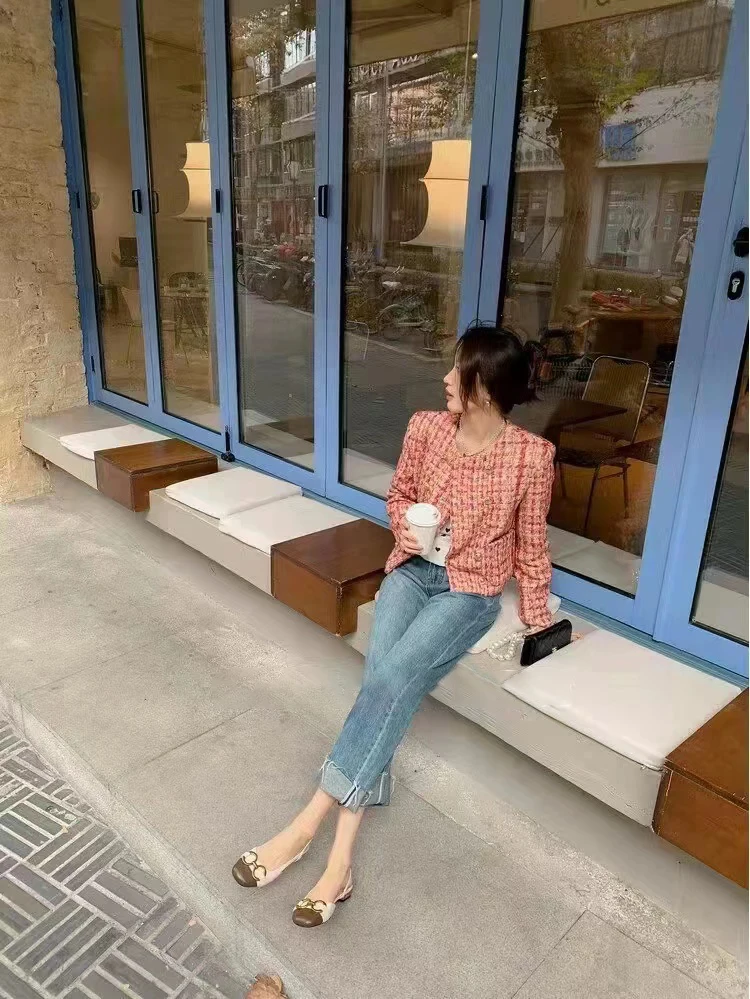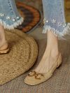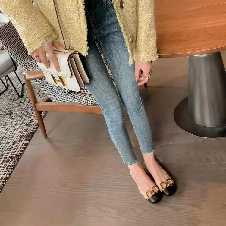 3 reviews for French Retro Baotou Horsebit Women Sandal Real Leather Stitching Low Heels Office Shoes Slip on Sapatos Femininos