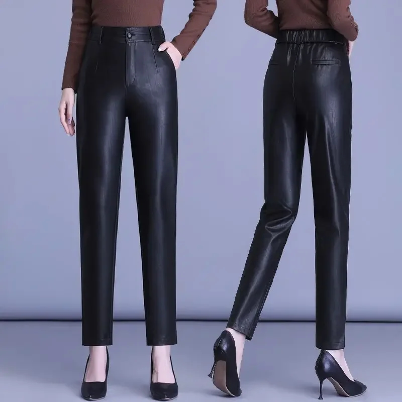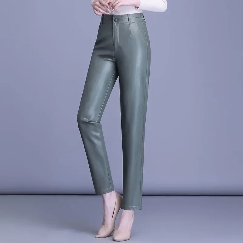 2024 Spring Autumn New Women’s Clothing High Waist Pure Color Leather PU Leather Pants