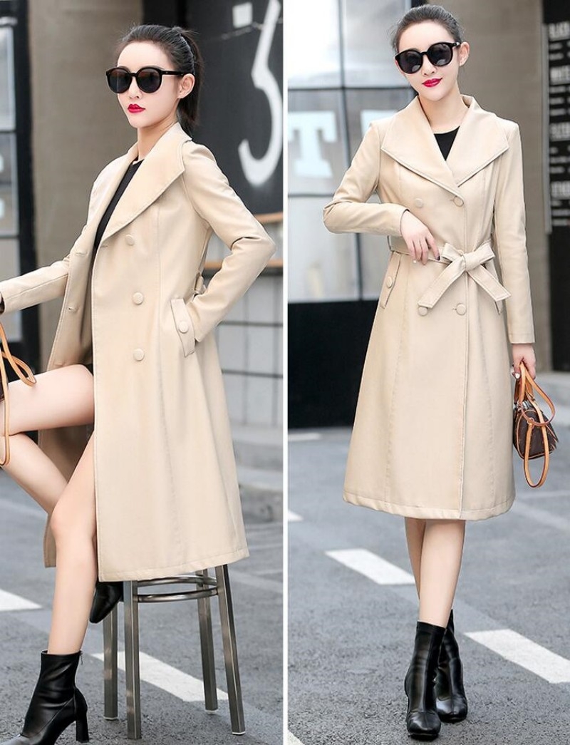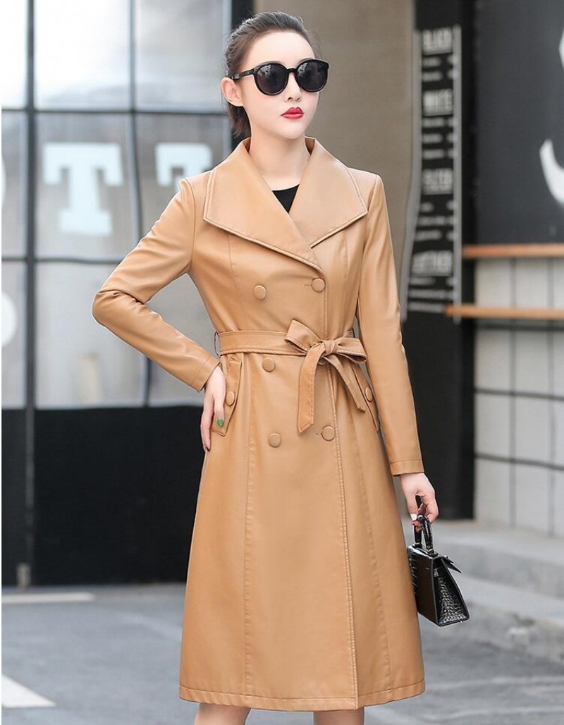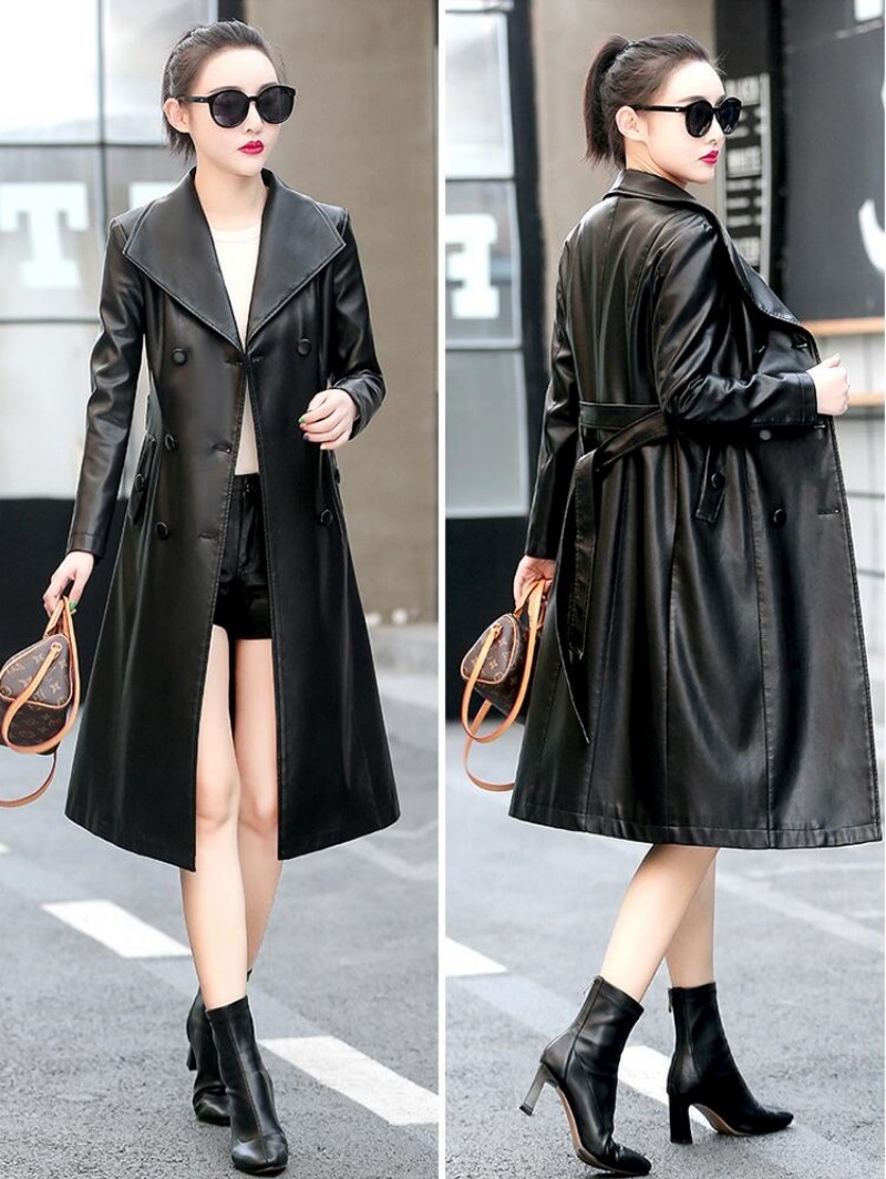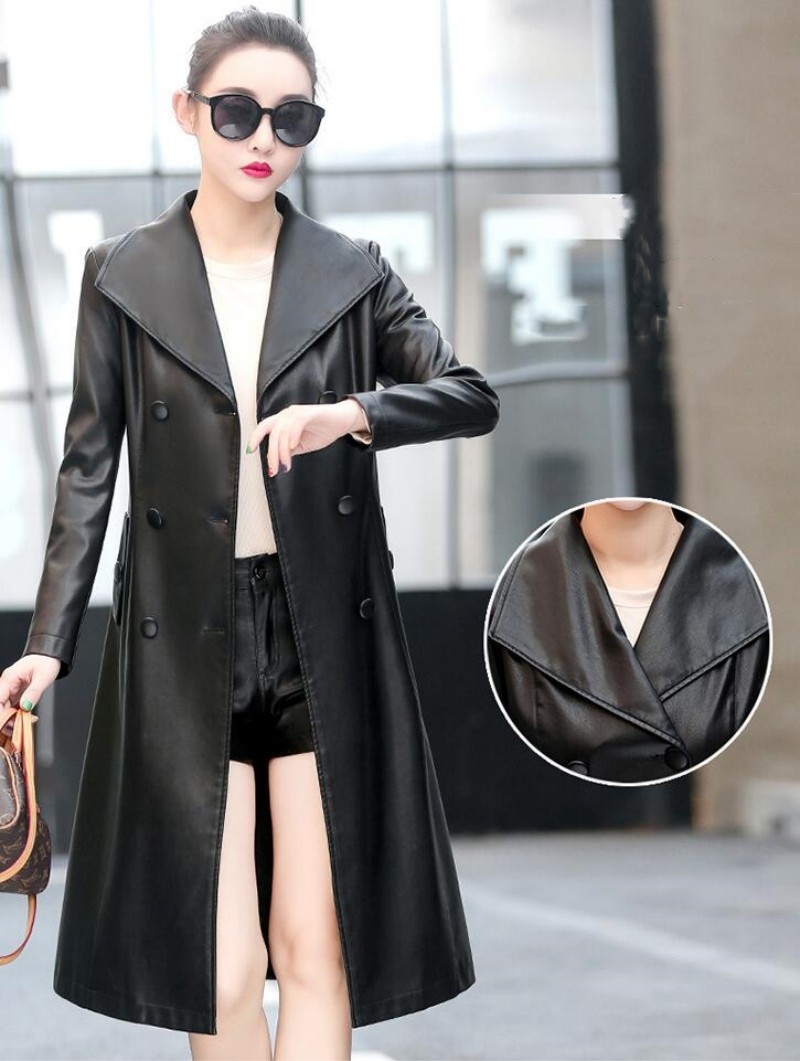 Genuine Leather Women Sheepskin Coat Spring Autumn Fashion Double Breasted Long Jacket Sheep Leather Overcoat Suede Outerwear