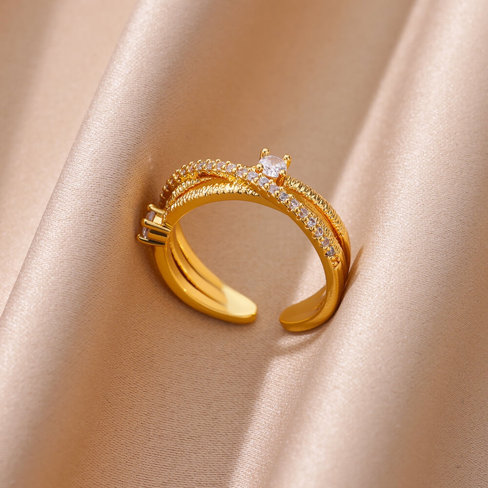 3 reviews for Gold Plated Stainless Steel Crystal Rings For Women Chain Geometry Zircon Finger Ring Jewelry Gift anillos mujer 2025 New Trendy