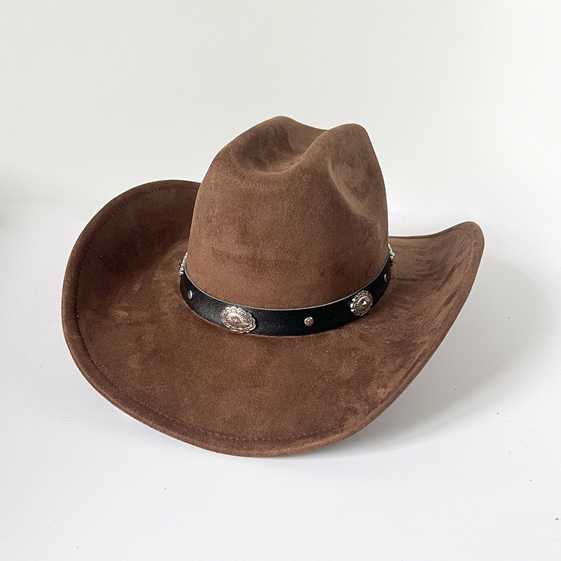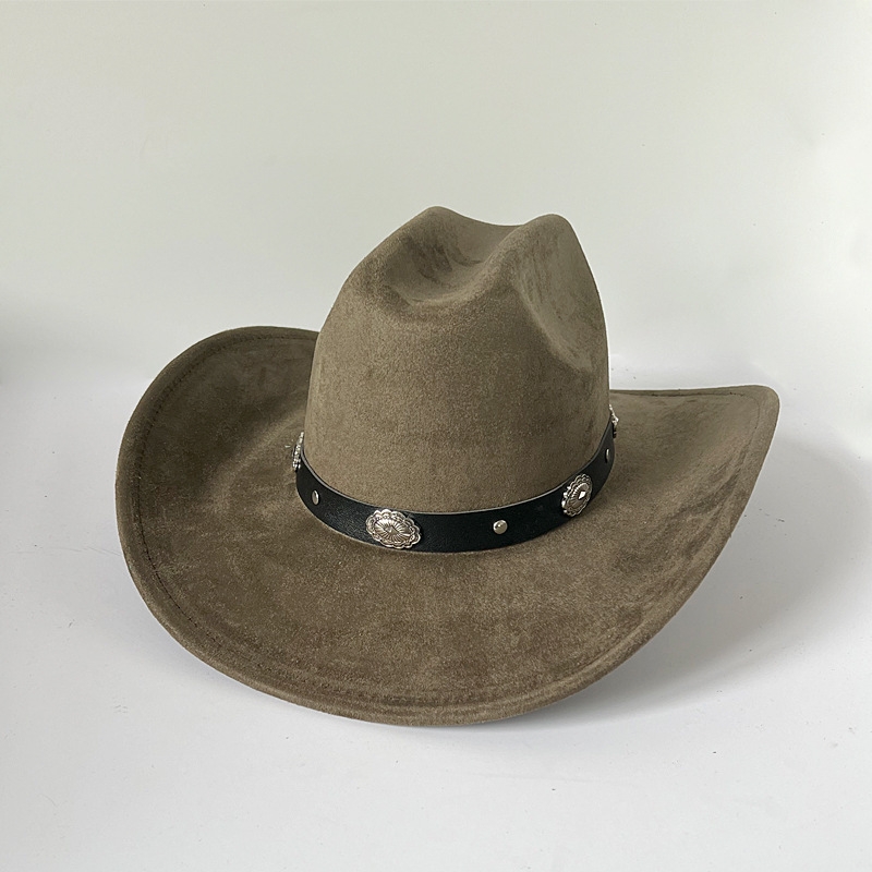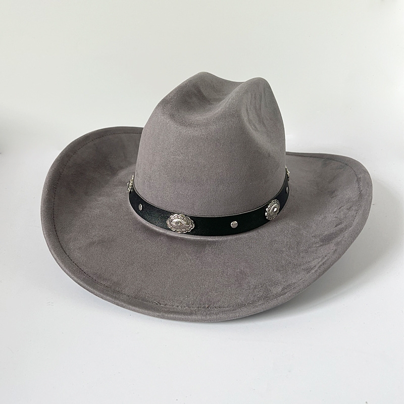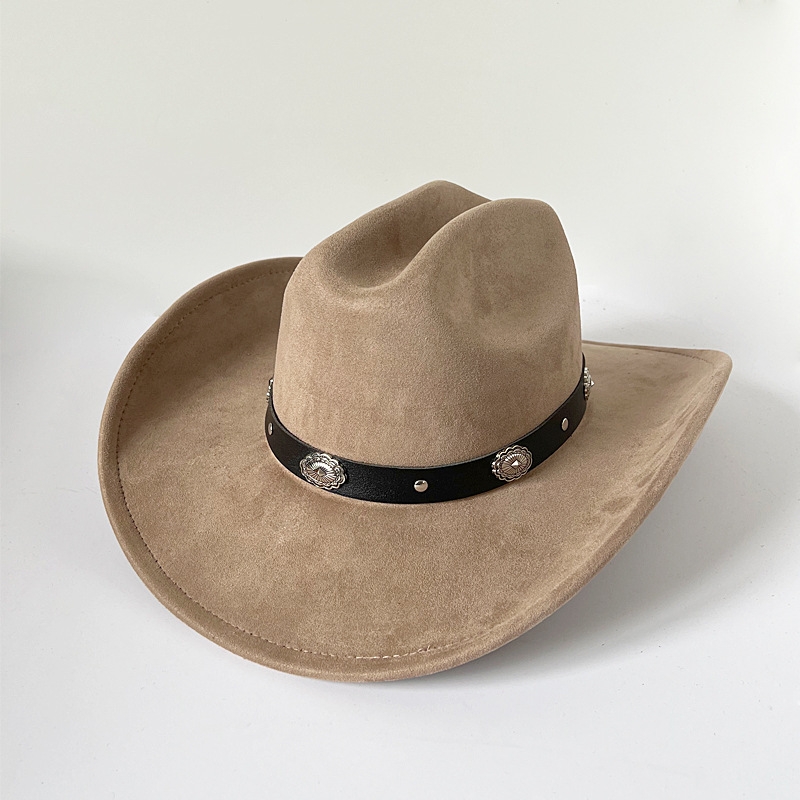 gorras hombre cowboy hat frosted velvet metal three-dimensional flower round large size western cowboy hat suede gorras