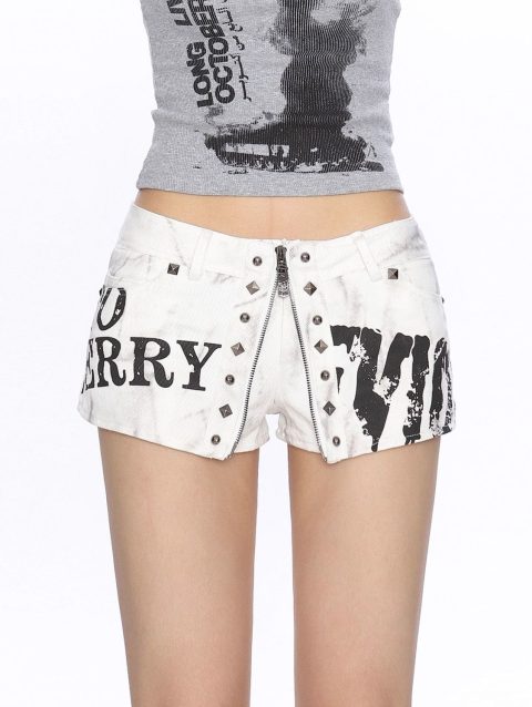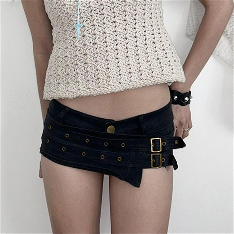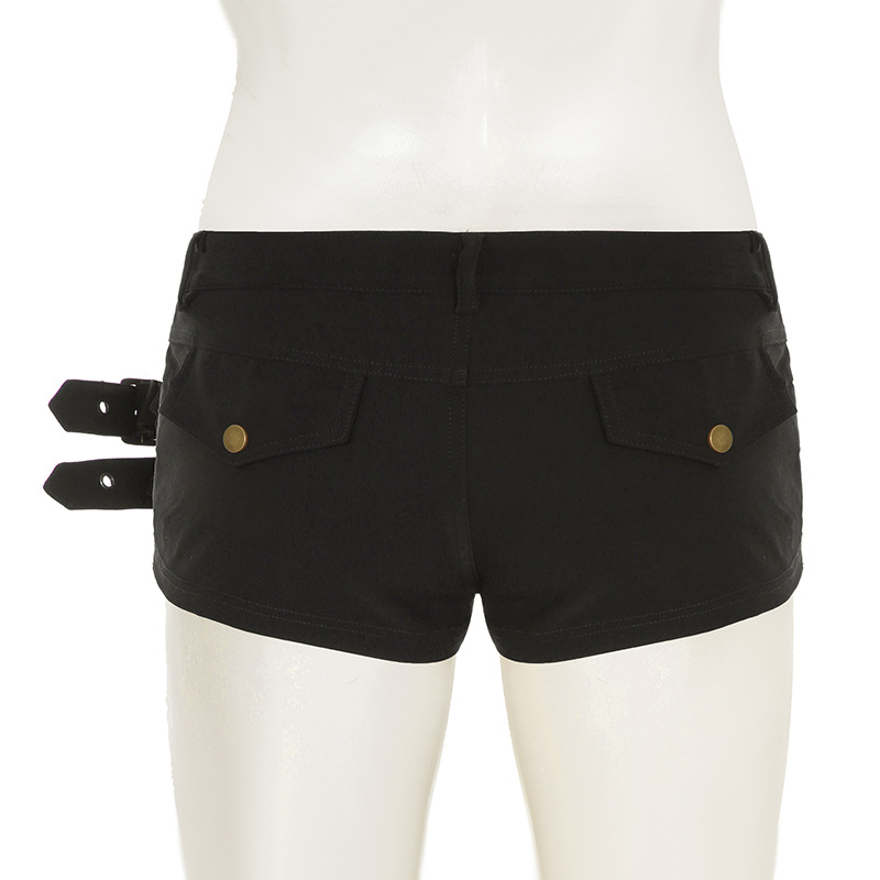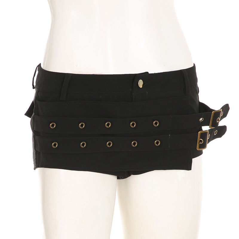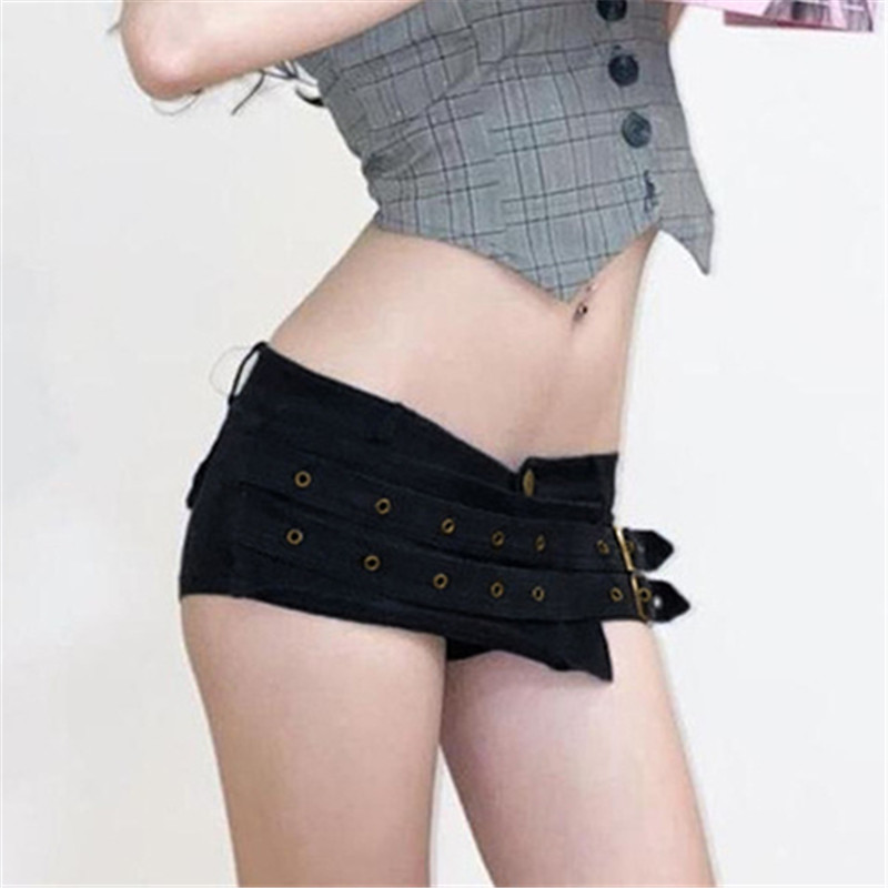 Goth Dark Punk Style Metal Buckle Ultrashort Pants Mall Goth Low Waist Skinny Shorts Cyber Y2K Streetwear Women Alt Hot Pants