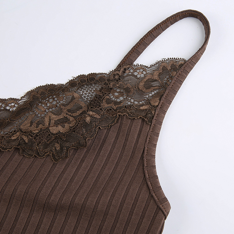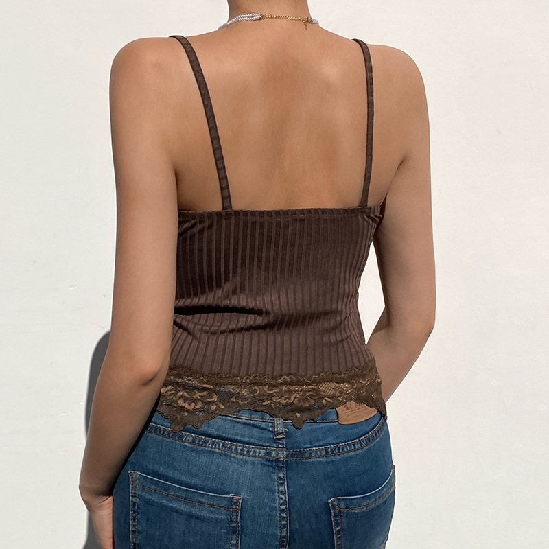 Gothic Basic Bodycon Women Camis Grunge Punk Black Casual Lace Trim Crop Tops Ribbed Backless Alt Clothes Summer