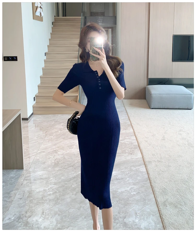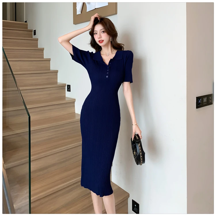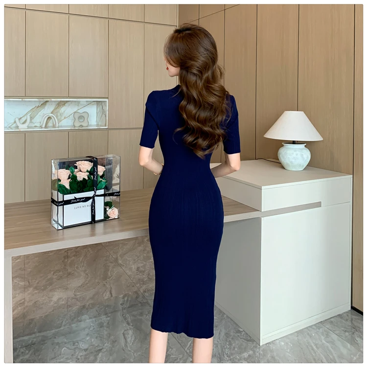 H Han Queen Summer Vestido Women Short Sleeve Sheath Stretch Knit Midi Dresses Elegant Korean Evening Party Dress Woman Clothing