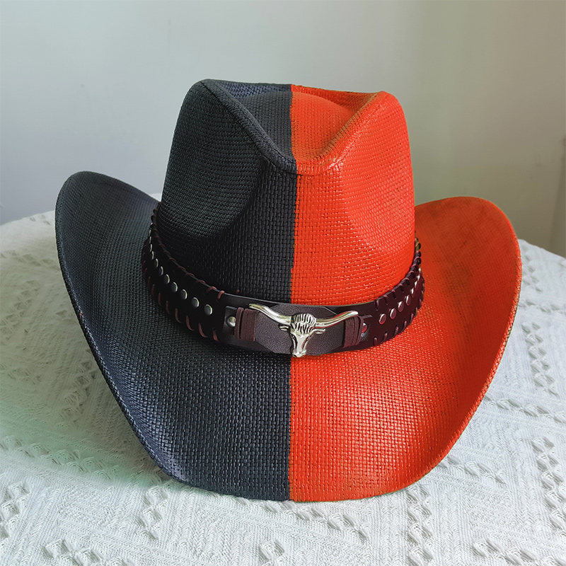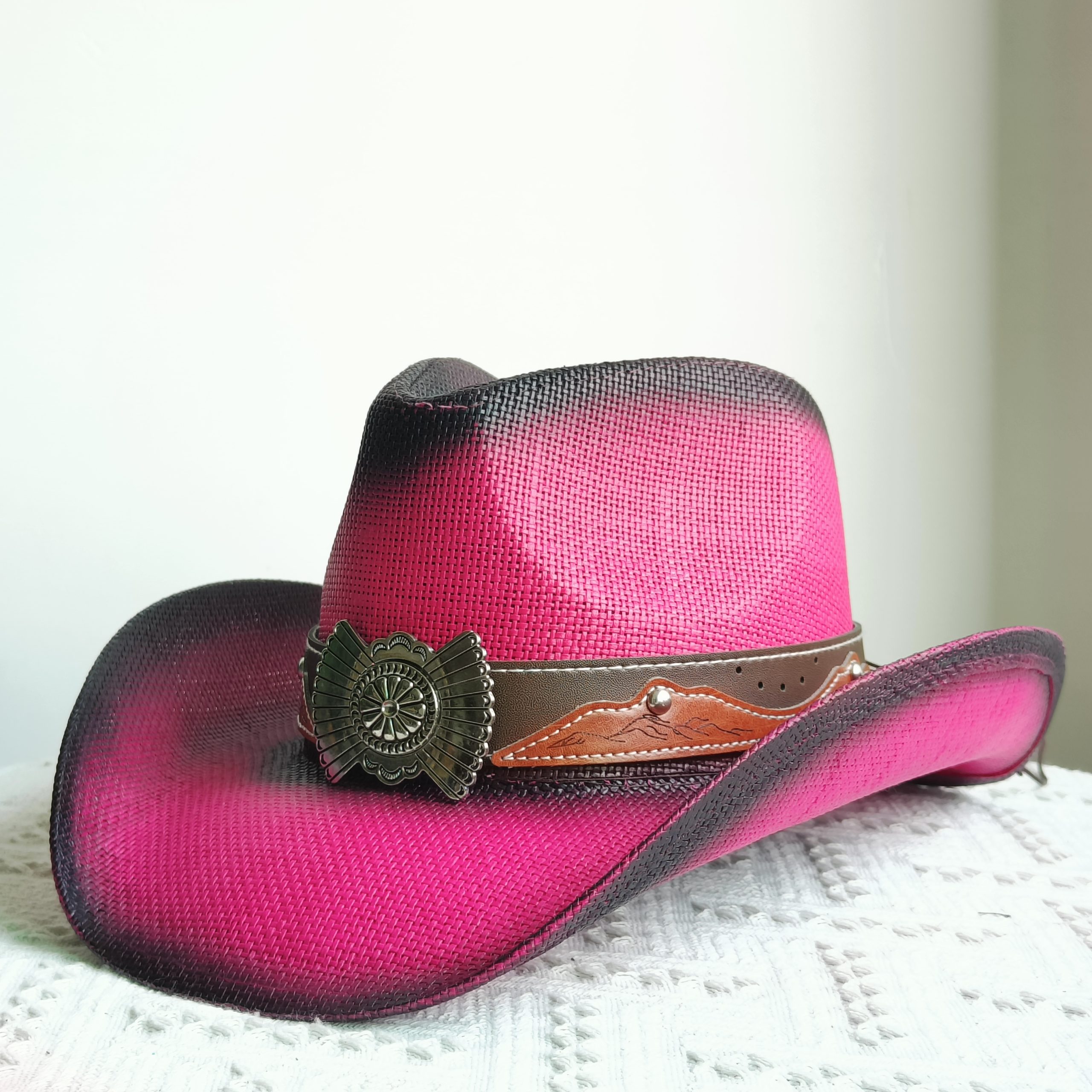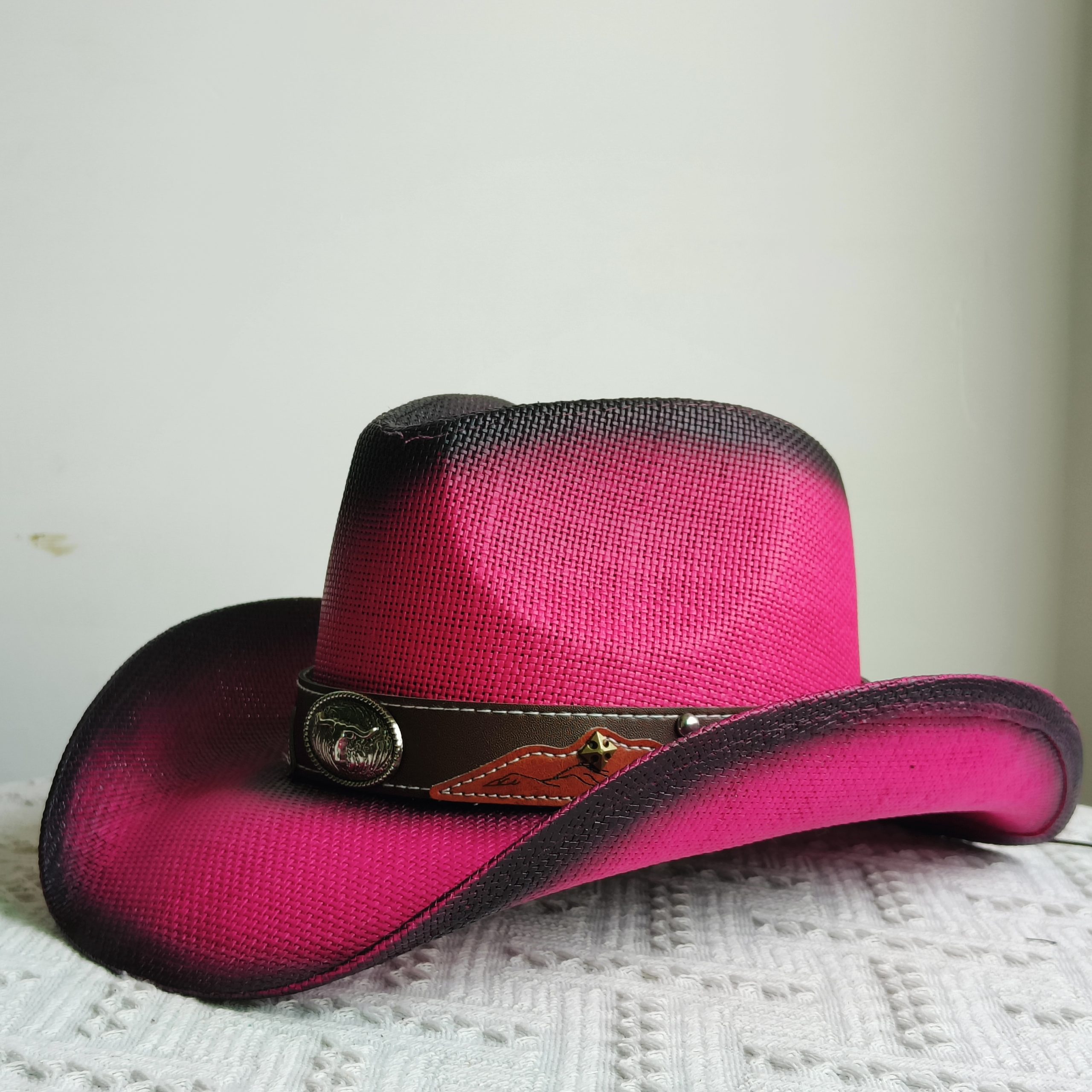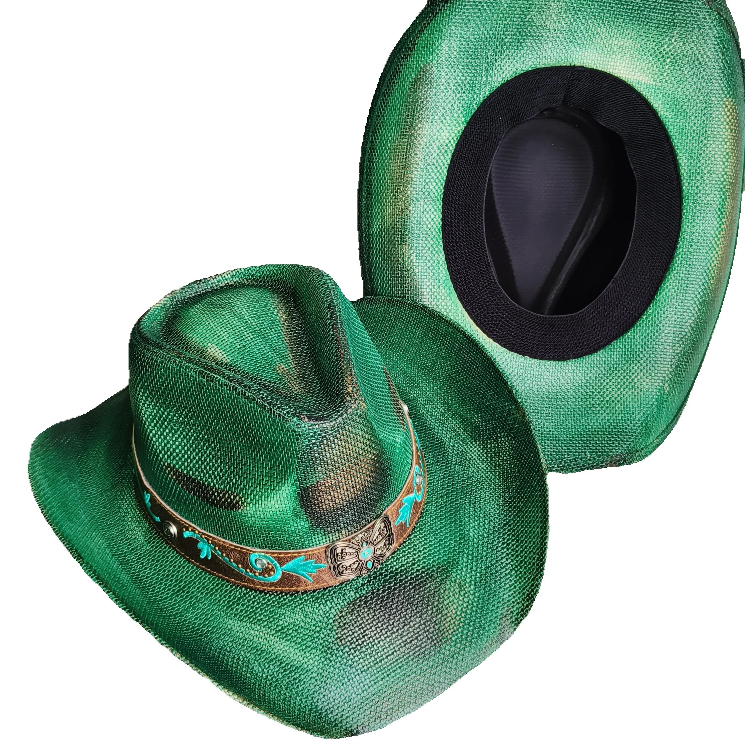 Hand-painted Western Cowboy hat Bronze green hat for men women Large Brim stiff straw hat summer sombrero vaquero hombreковбойс