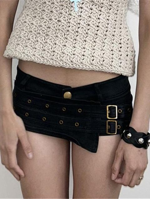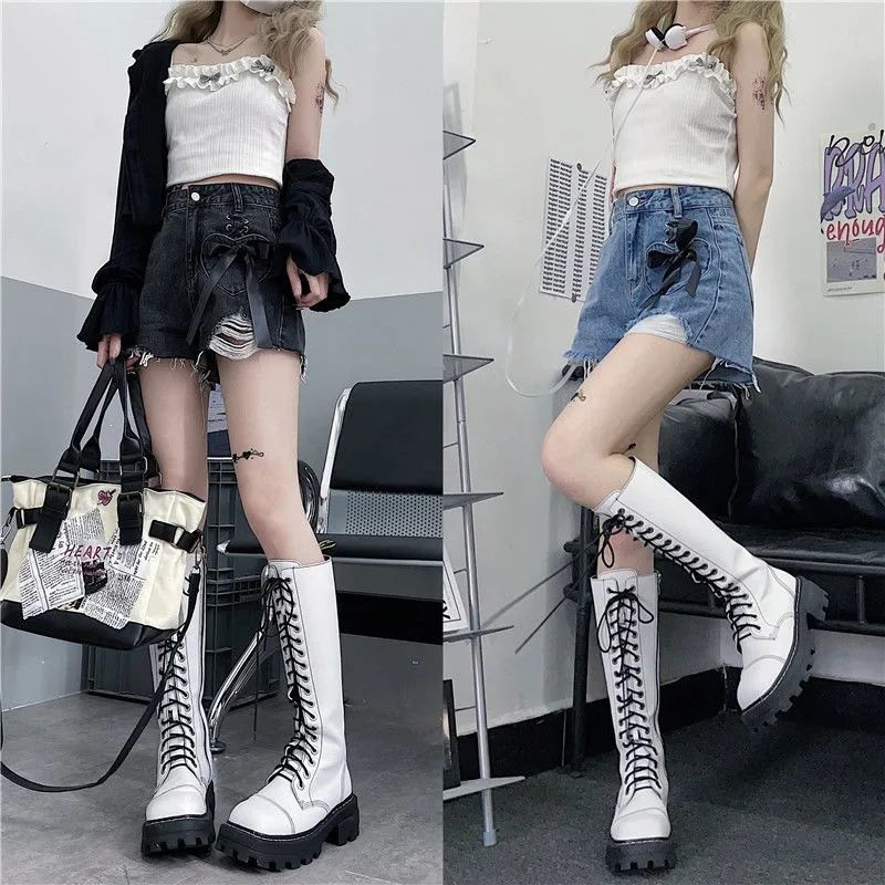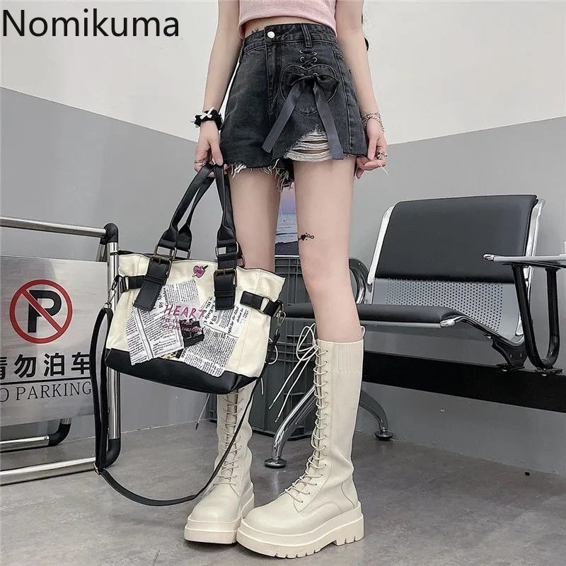 Harajuku Y2k Denim Shorts Bandage Bow Hole Summer Pants High Waist Tunic Sexy Fashion Wide Leg Shorts Pantalones Cortos De Mujer