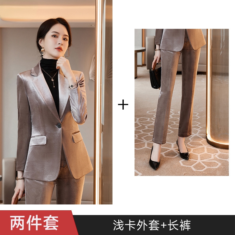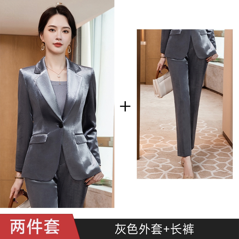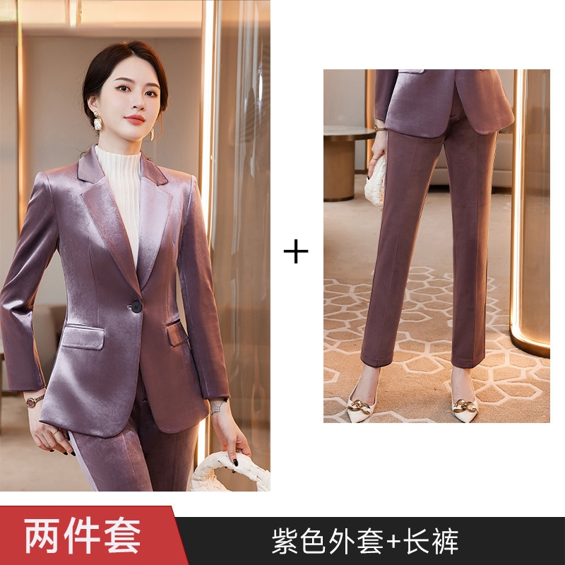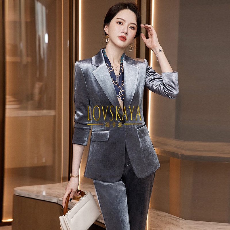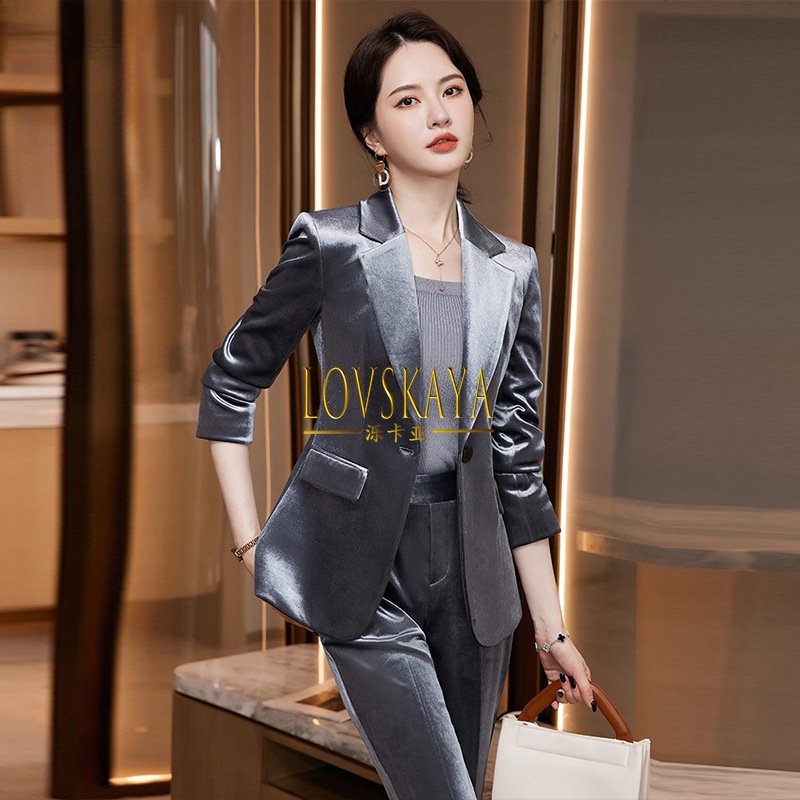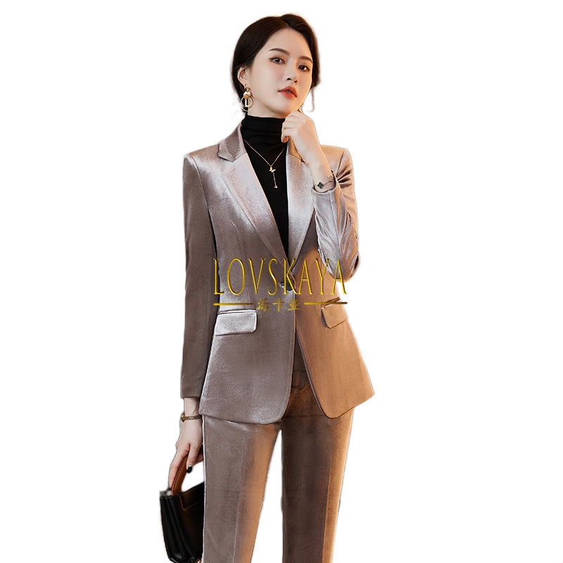 High end fashionable and elegant casual top acetate satin gold velvet suit set for women