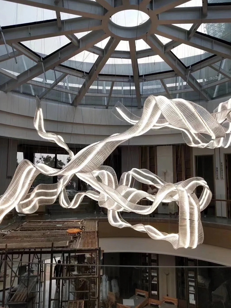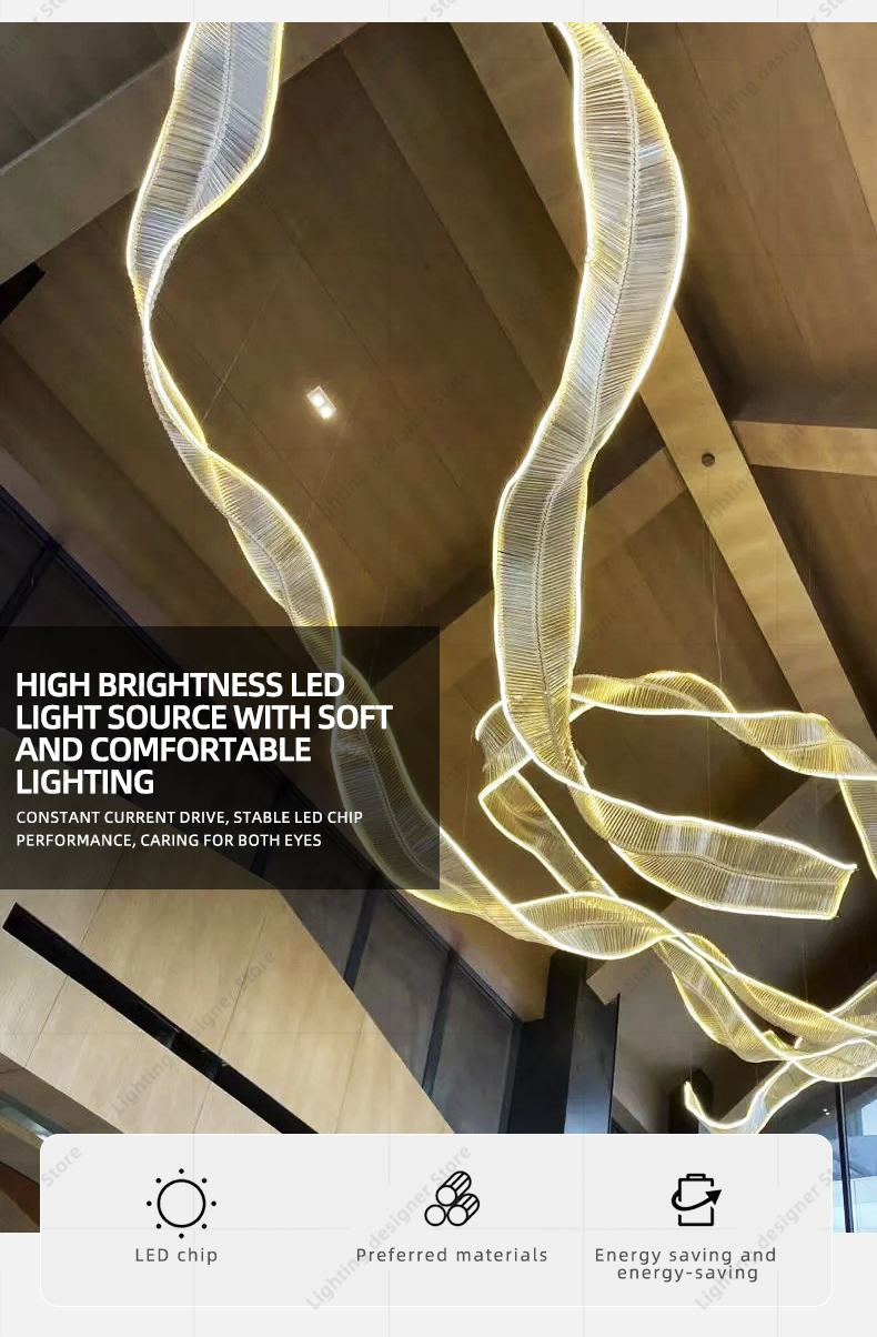 Hotel Living Room Hanging Led Chandelier Hotel Restaurant Large Led Chandelier Modern Pendant Light Glass Lights Luxury Lobby